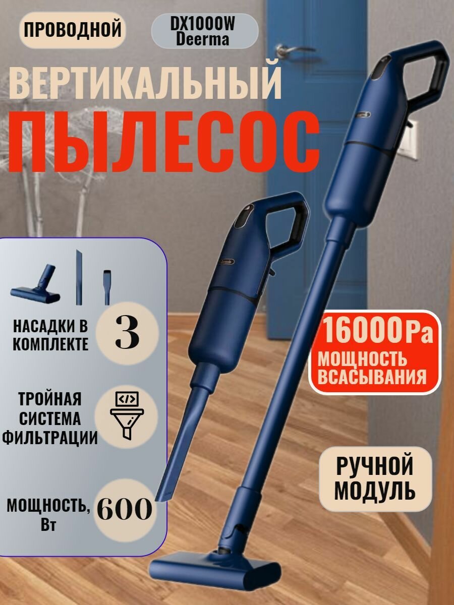Пылесос вертикальный Deerma DX1000 Vacuum Cleaner синий интересное: