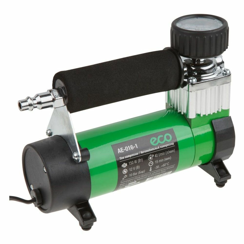 ECO AE0161 AE-016-1 Компрессор автомобильный (12 В, 150 Вт, 40 л/мин, 10 бар (маном. 7 бар), съем. шланг, сумка интересное: