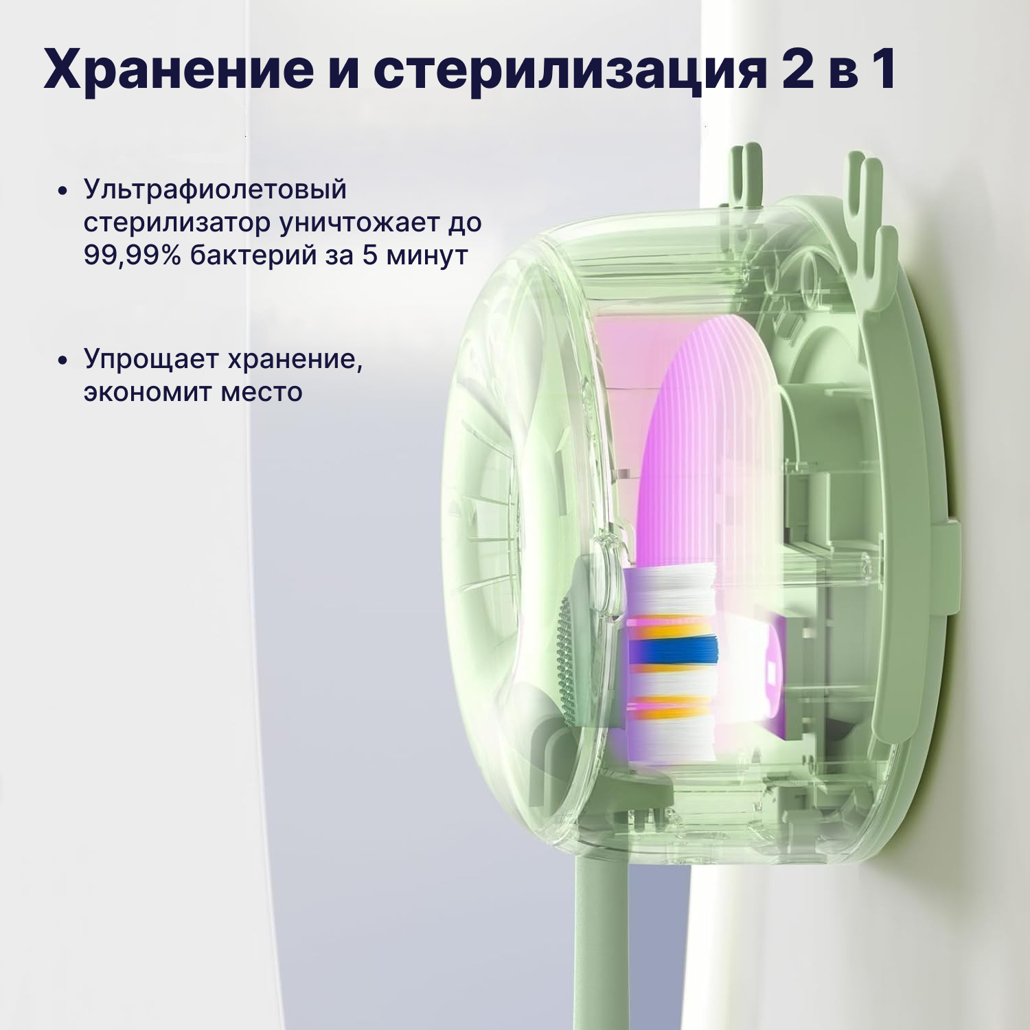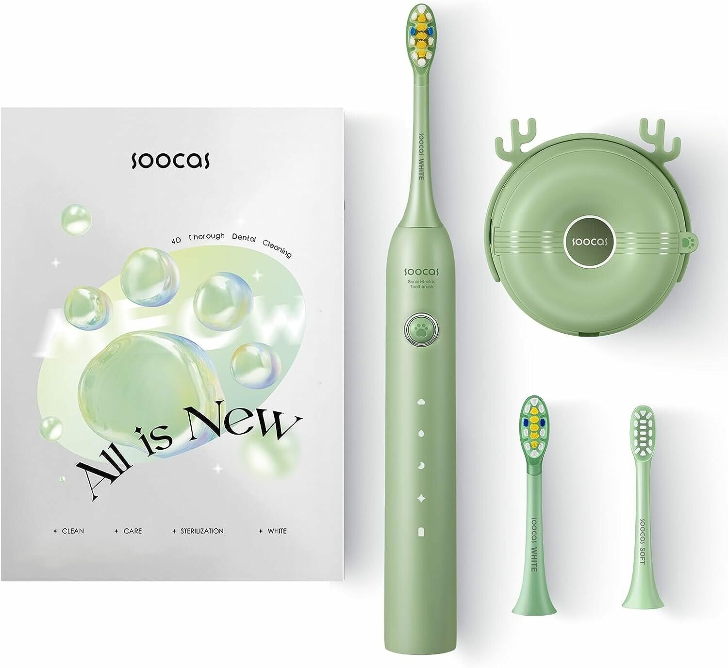 Электрическая зубная щетка Soocas D3, со стерилизатором, две насадки, 4 режима чистки, Зеленый, Ростест (EAC)