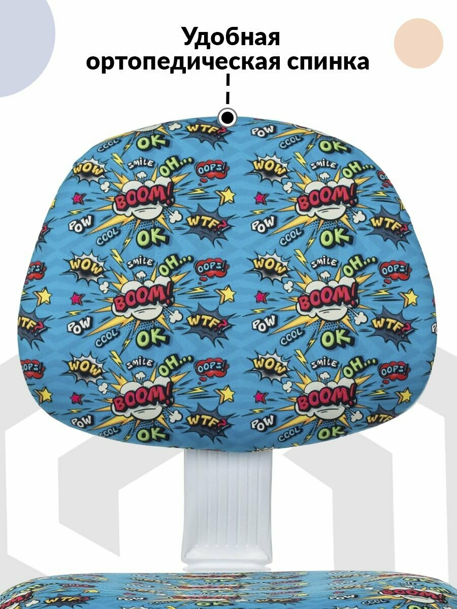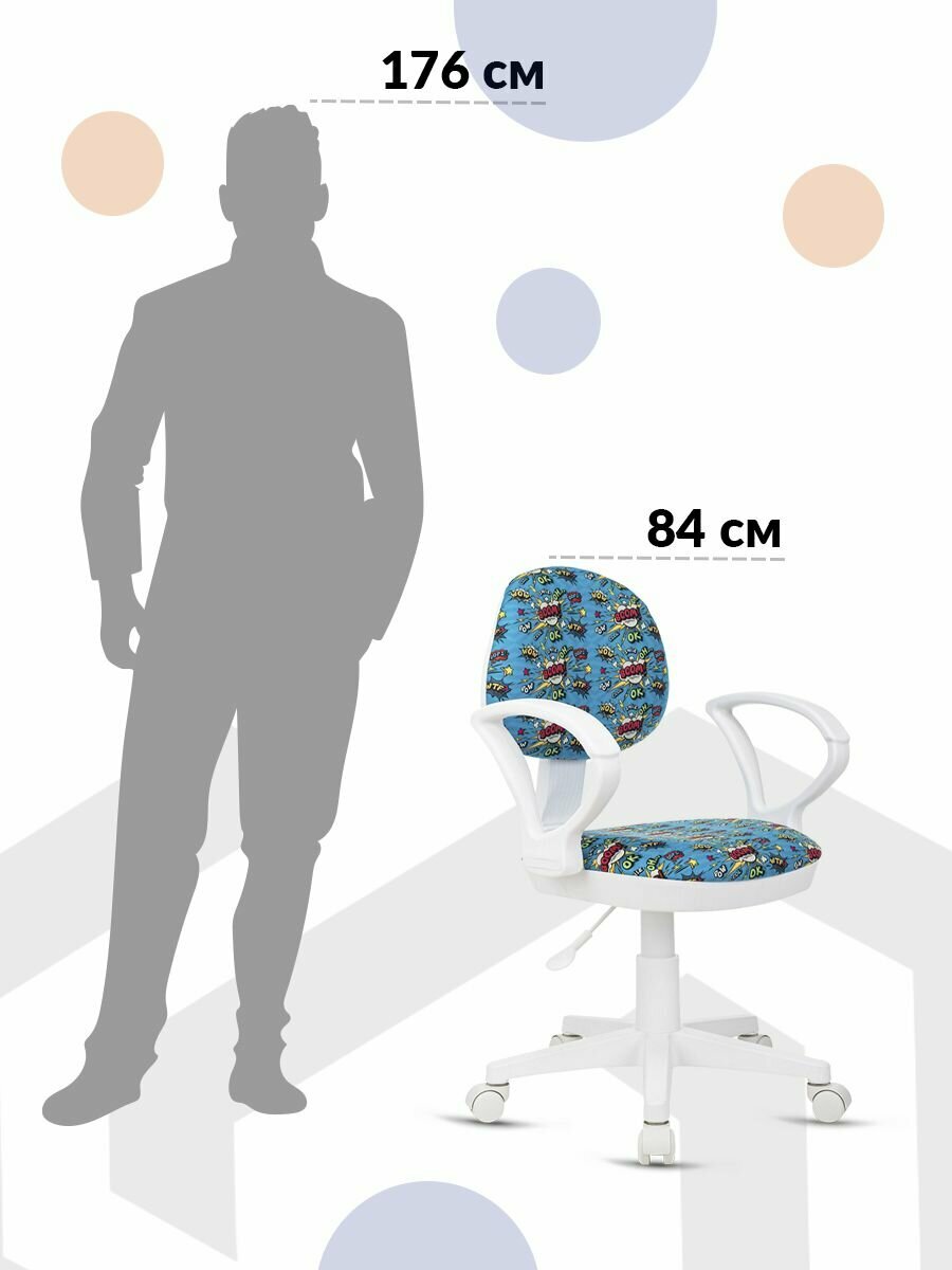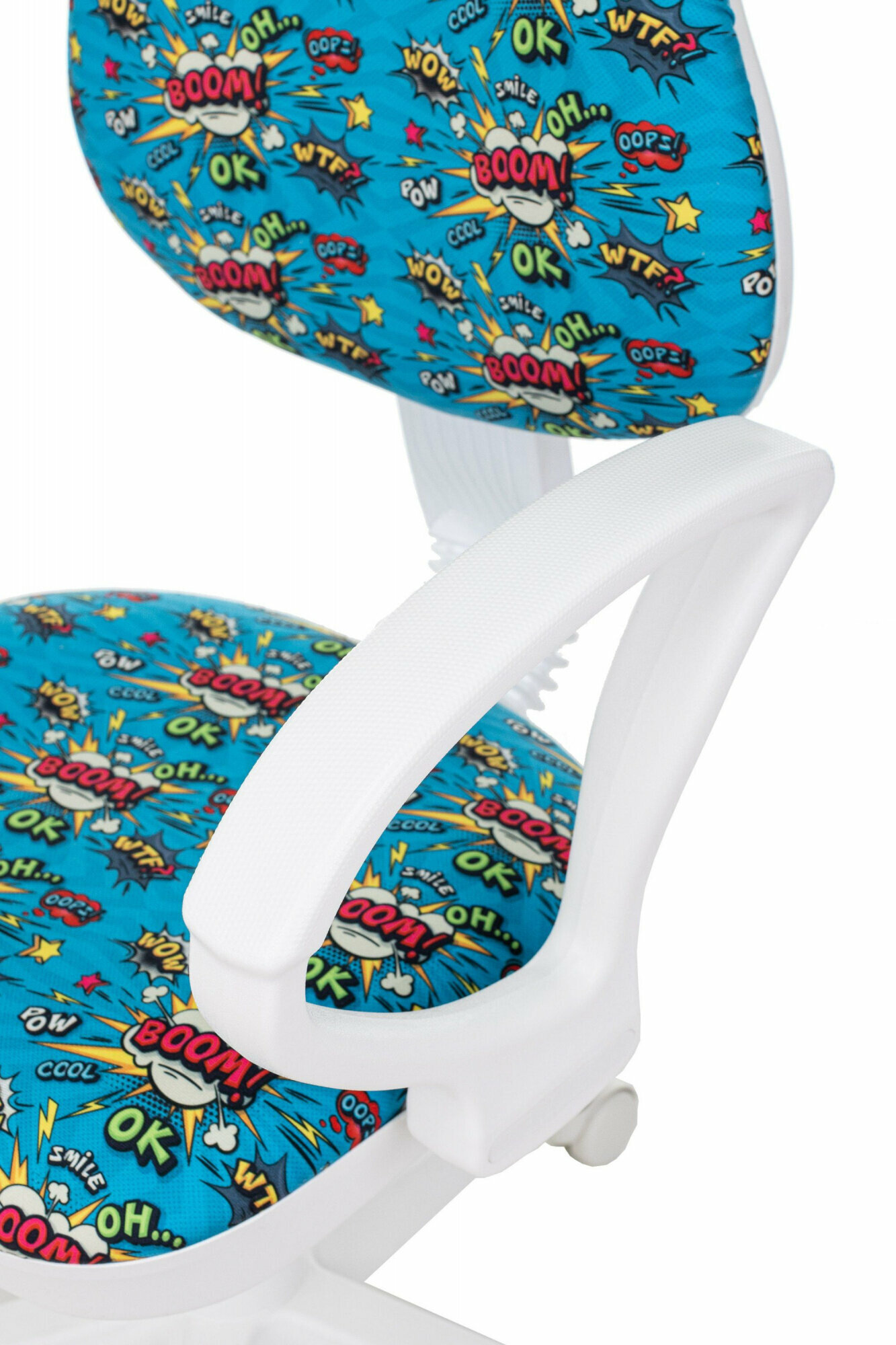 Кресло детское KD-3/WH/ARM голубой бум крестовина пластик белый / Компьютерное кресло для ребенка, школьника, подростка