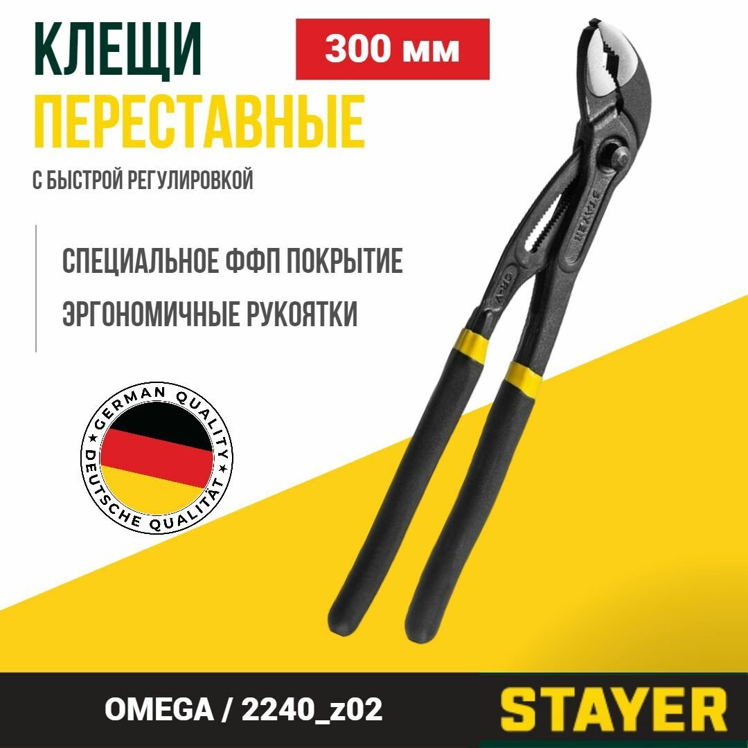 STAYER Клещи переставные "OMEGA", c быстрой регулировкой, Cr-V, тип "К", 300мм, STAYER Professional ( 2240_z02 )