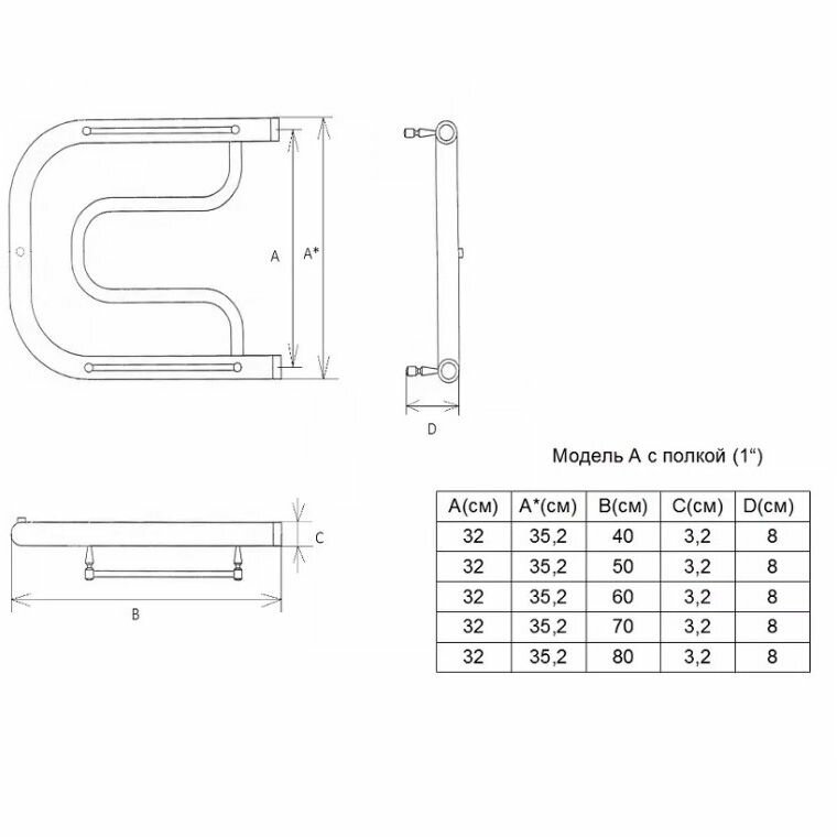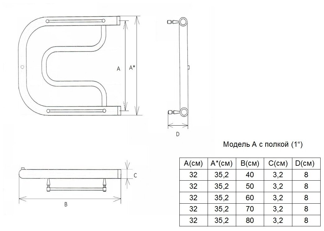 Полотенцесушитель двин A 32/70 c полкой Водяной 1"-1/2" К0 Полированный(4627159980128)