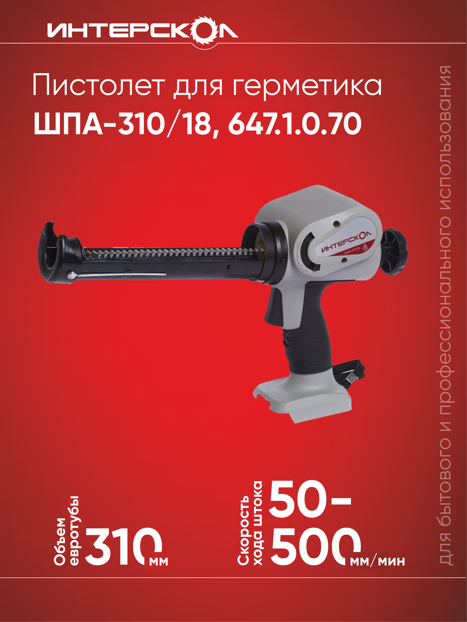 Ниже Вы можете прочитать отзывы на Пистолет для герметика Интерскол ШПА-310/18 647.1.0.70, ознакомится с подробными характеристиками, посмотреть интересные обзоры и фотографии на Пистолет для герметика Интерскол ШПА-310/18 647.1.0.70.