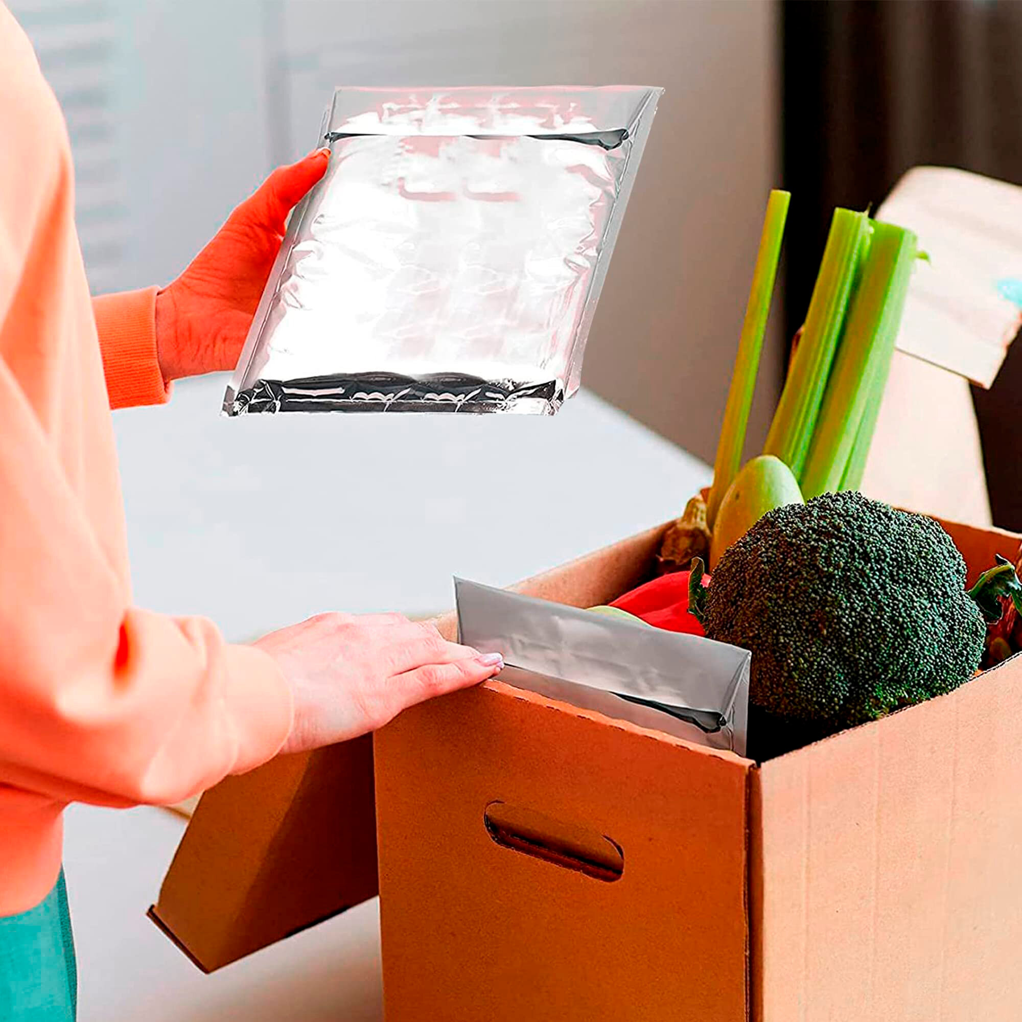 Термопакеты для продуктов металлизированные с утолщенными стенками, 21*28см, 10шт. Термосумка, сумка-холодильник, медикаментов, заморозки