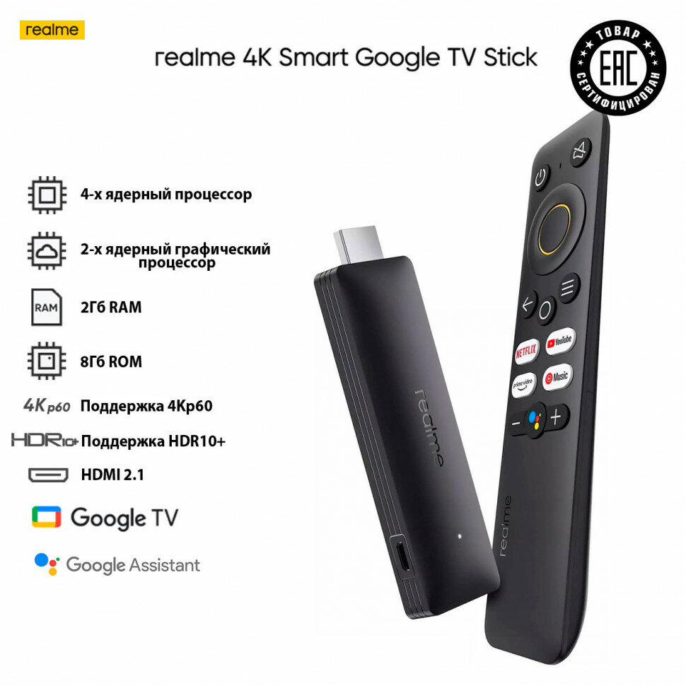 ТВ-адаптер realme 4K Smart Google TV Stick RU, черный