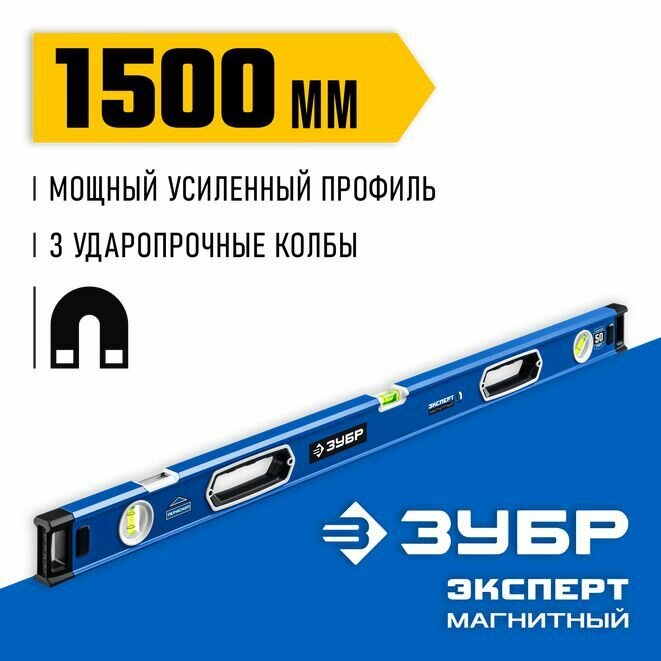 Уровень магнитный, 1500 мм, "Эксперт-М" Зубр 34572-150