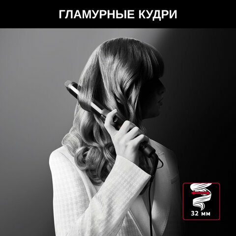 Щипцы для завивки волос ROWENTA Karl Lagerfeld CF323LF0, диаметр 32 мм, конусная форма, 120-200°C, черный, 1830008509 интересное: