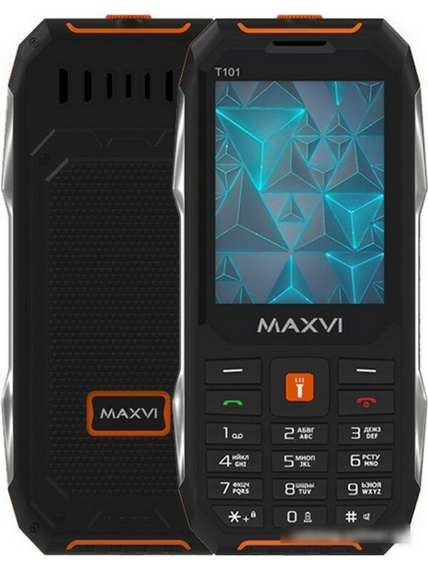 Телефон MAXVI T101, 2 micro SIM, черный/оранжевый