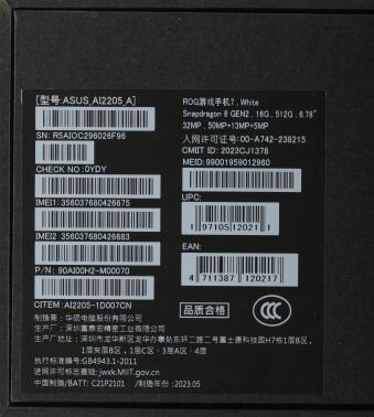 Смартфон Asus AI2205 ROG Phone 7 5G 512Gb 16Gb белый моноблок 3G 4G 2Sim 6.78" 1080x2448 Android 13 50Mpix 802.11 a/b/g/n/ac/ax/be NFC GPS GSM900/1800