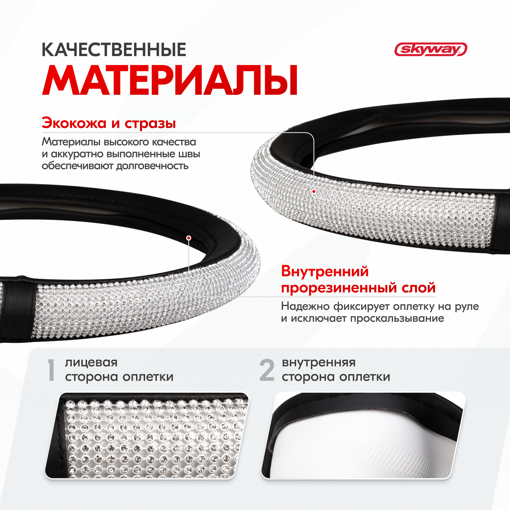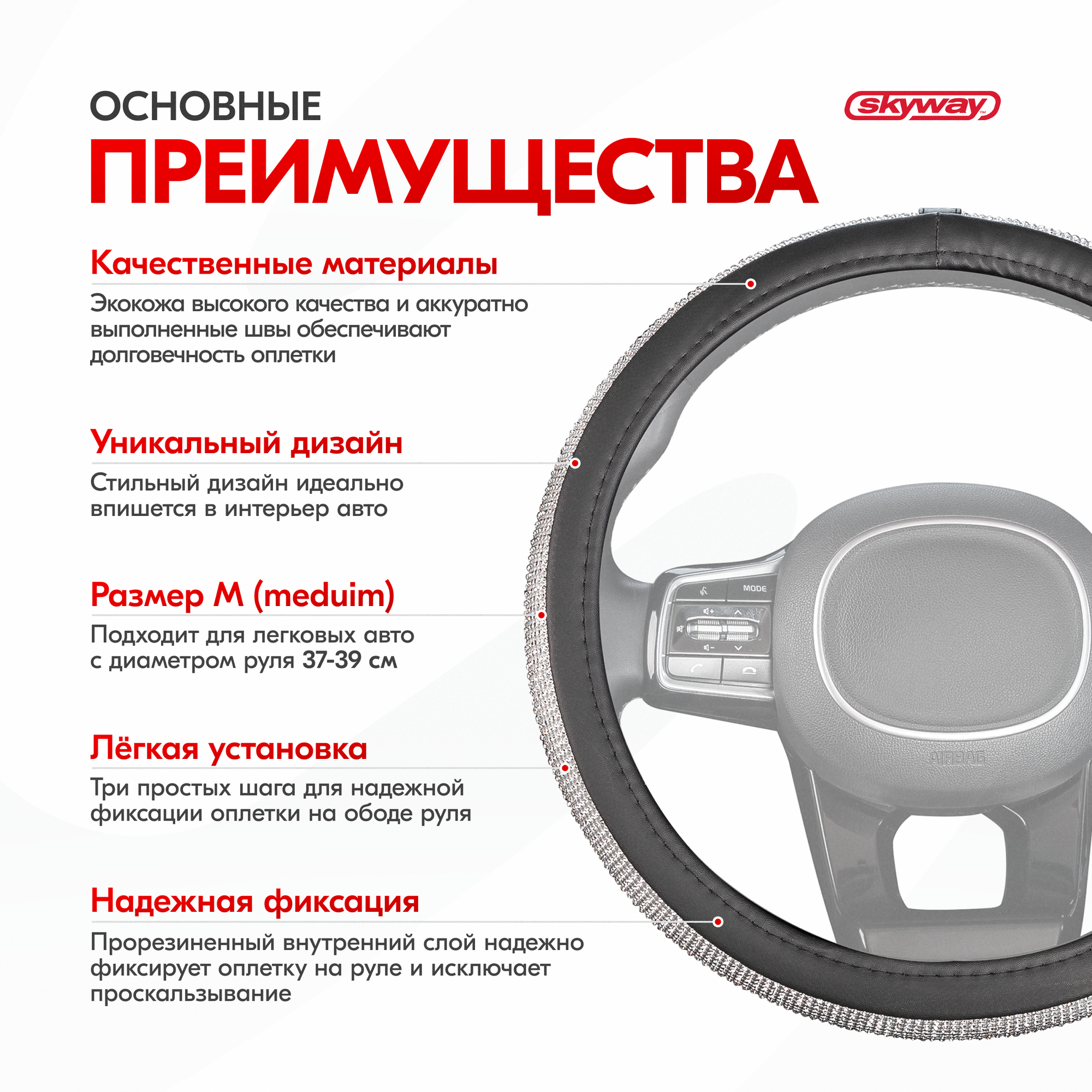 Оплетка руля M Skyway Eco Crystal-1 экокожа красные стразы SKYWAY S01102463 | цена за 1 шт