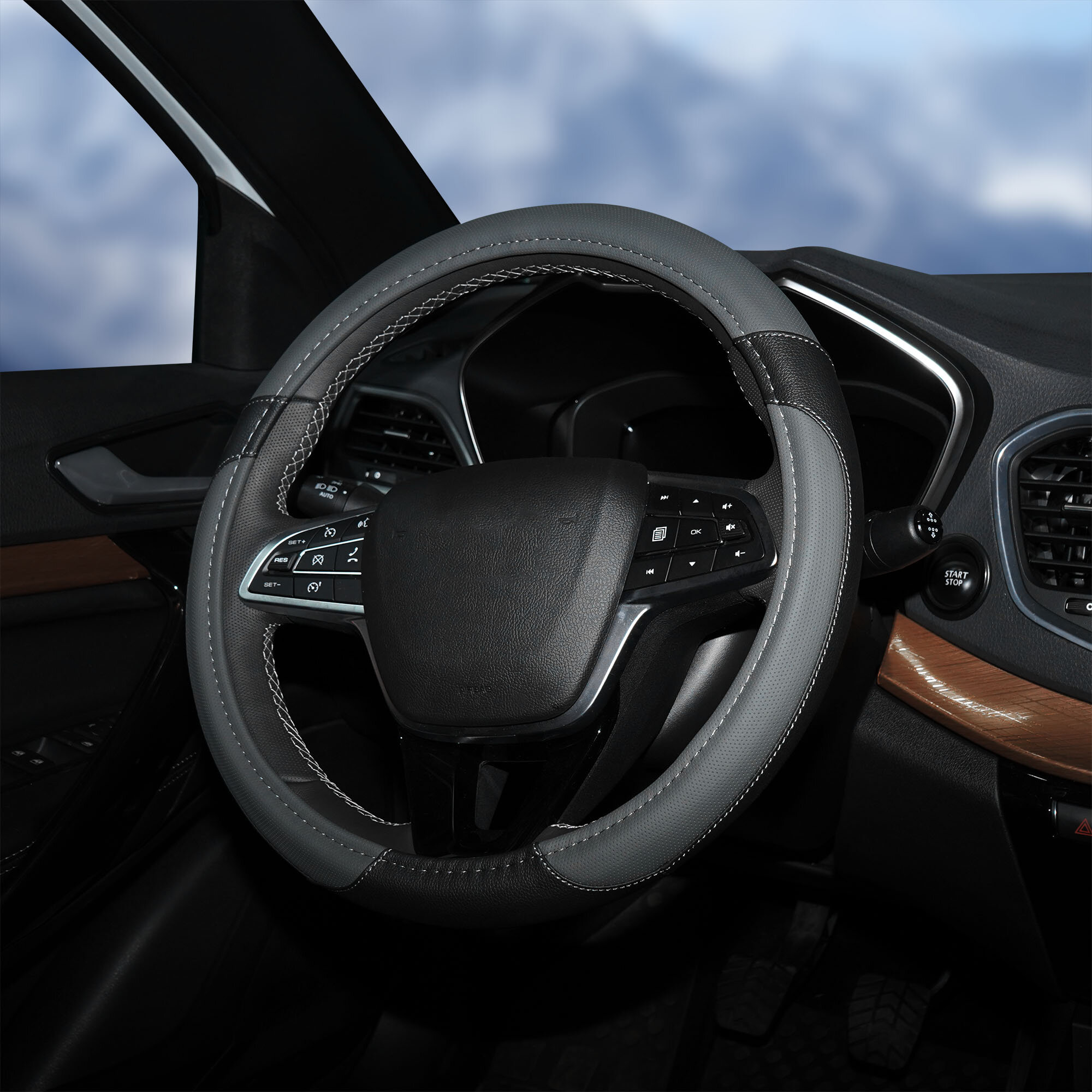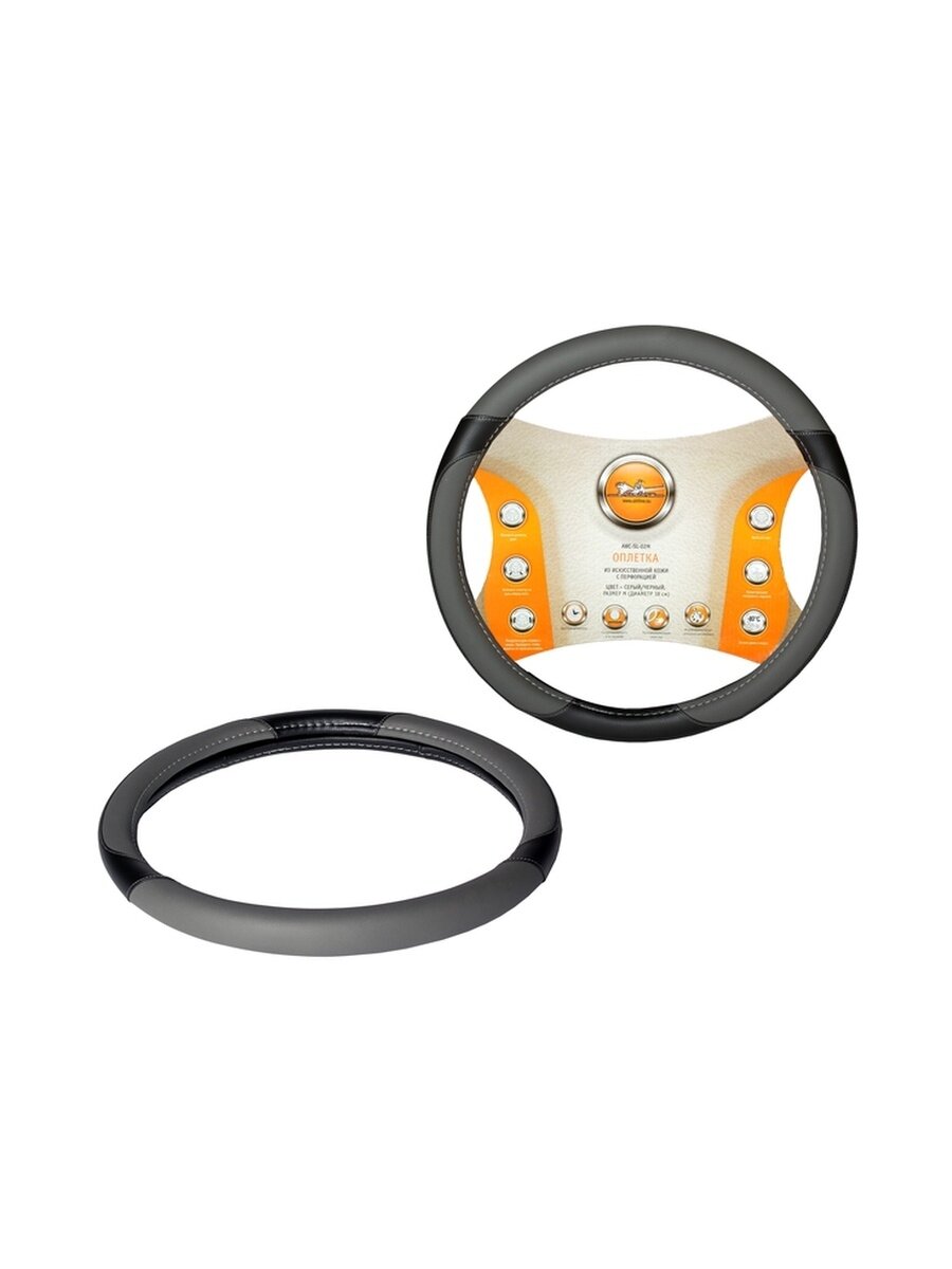 Оплетка на руль, искусственная кожа с перфорацией, серая/черная, 40 см / L (AWC-SL-02L)