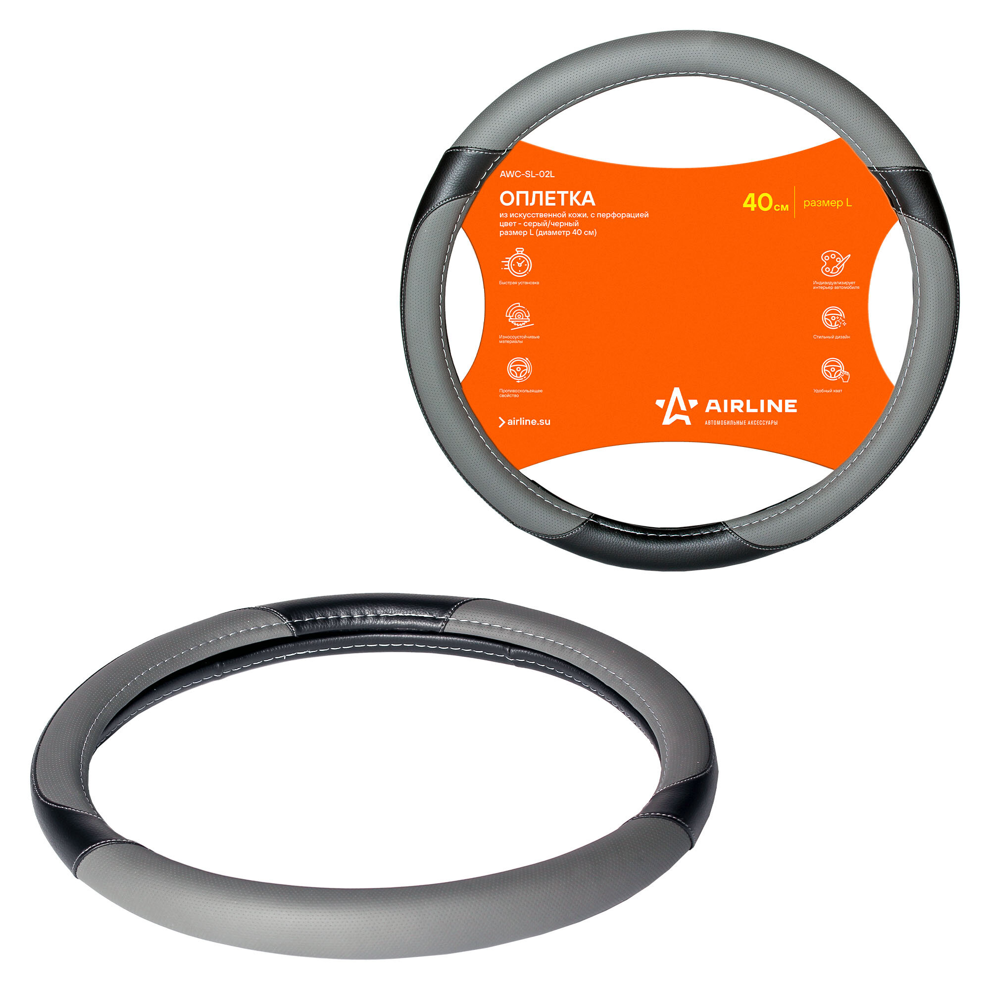 Купить AIRLINE Оплетка на руль L 39-40 см. (классика, Волга) искусст. кожа с перфорац. Серый/Черный (AWC-SL-02L)
