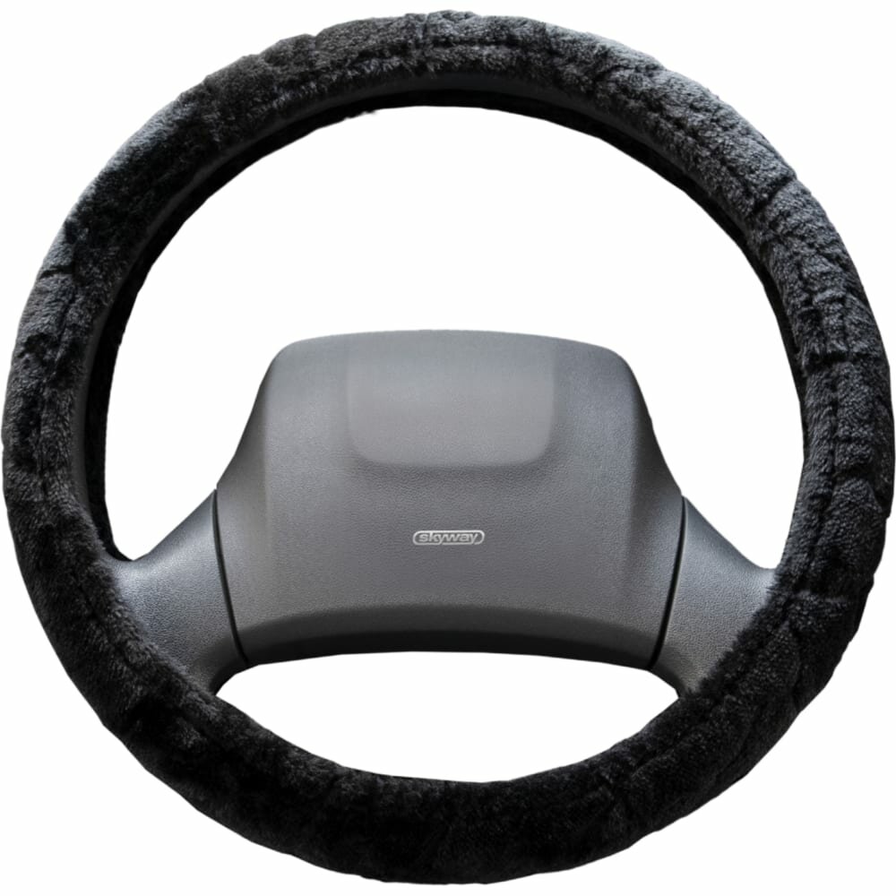 Оплётка руля SKYWAY меховая искуст черная ECO (L)