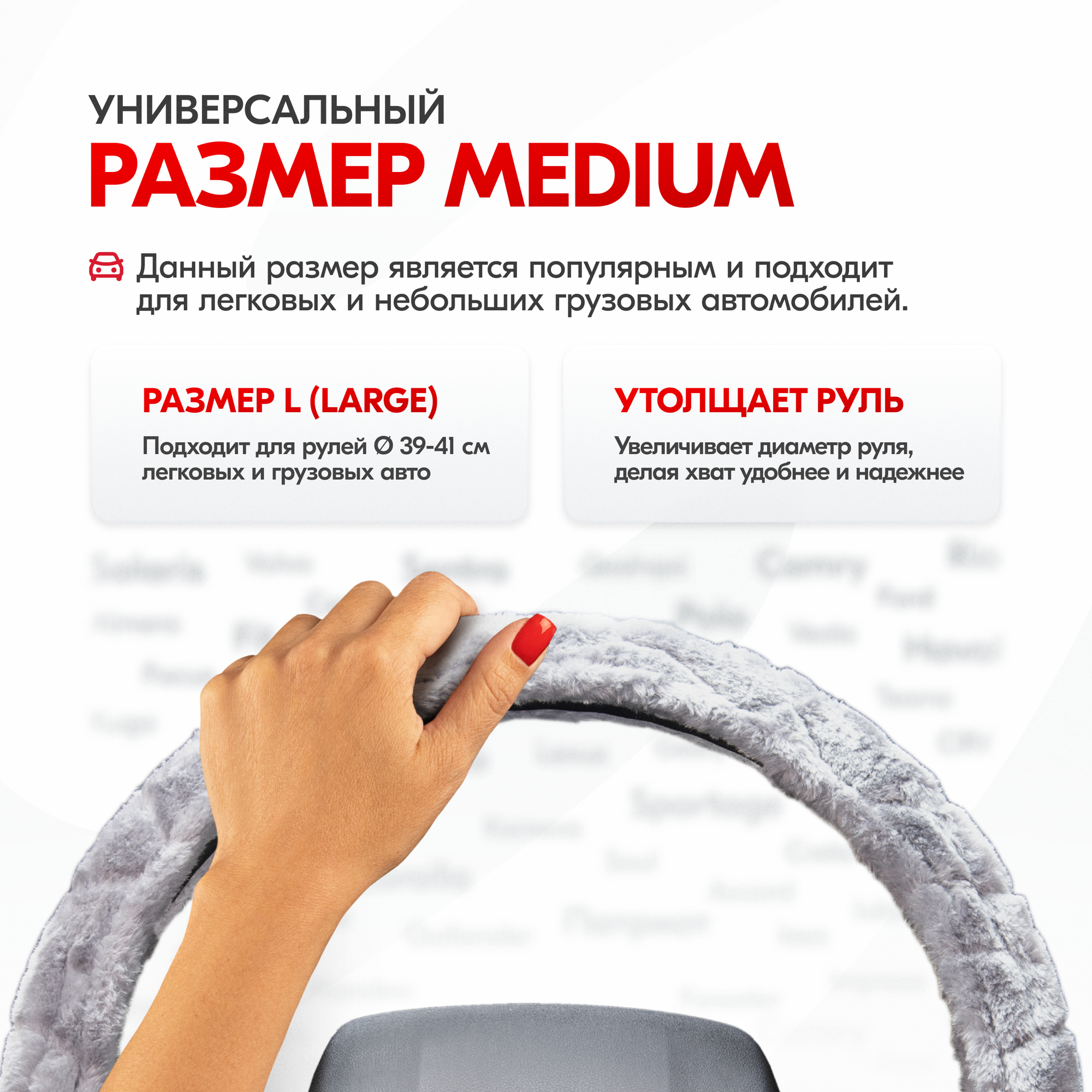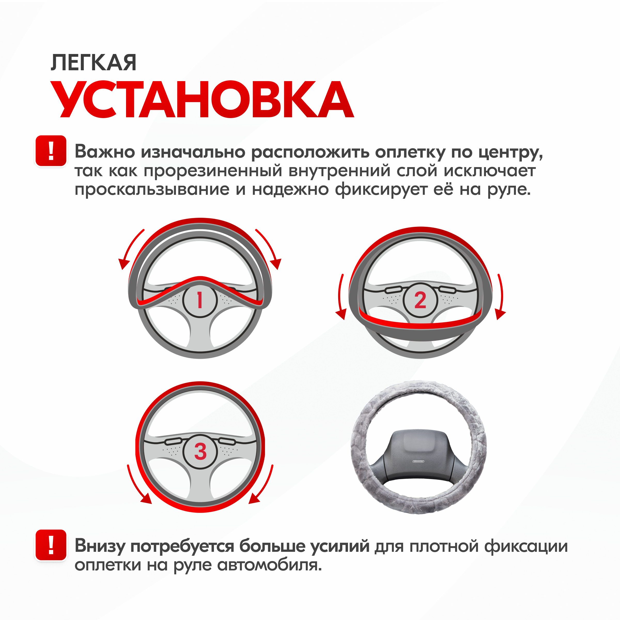 | Дополнительная информация | Рекомендации производителей: выбирайте оплётку под размер вашего рулевого колеса. Неверно выбранный размер может стать причиной проскальзывания оплётки или привести к невозможности снять или надеть её на руль. |