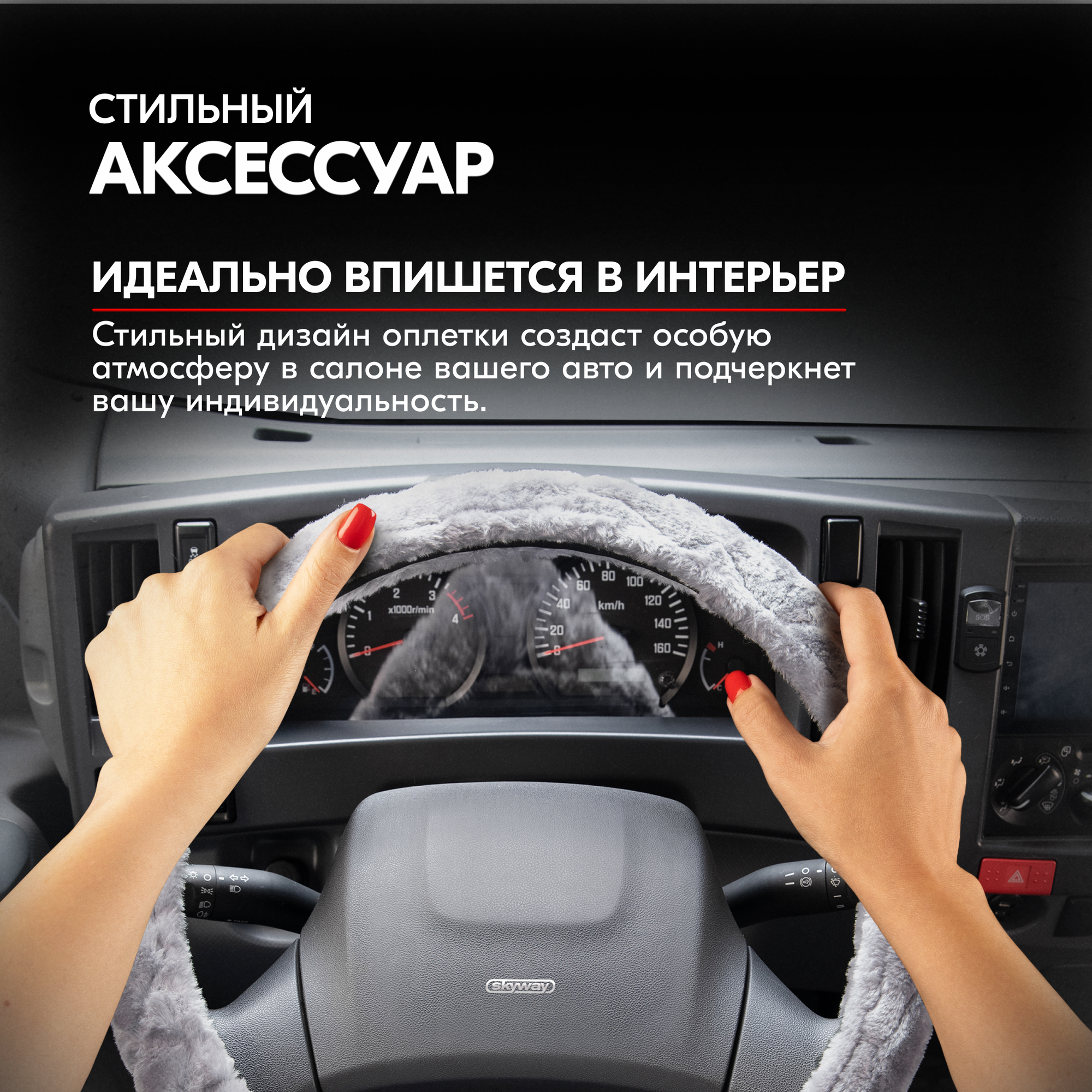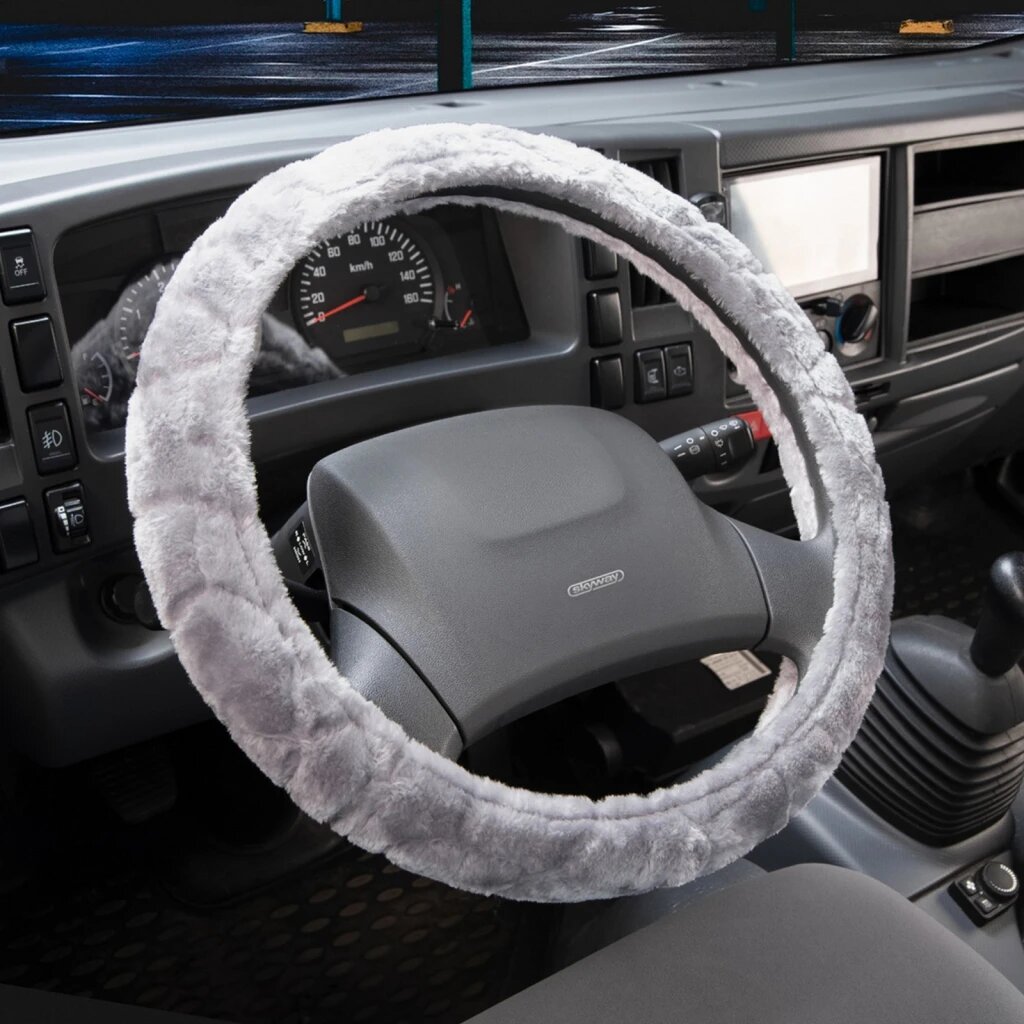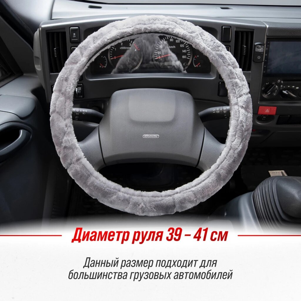 Оплётка руля SKYWAY меховая искуст серая ECO (L)