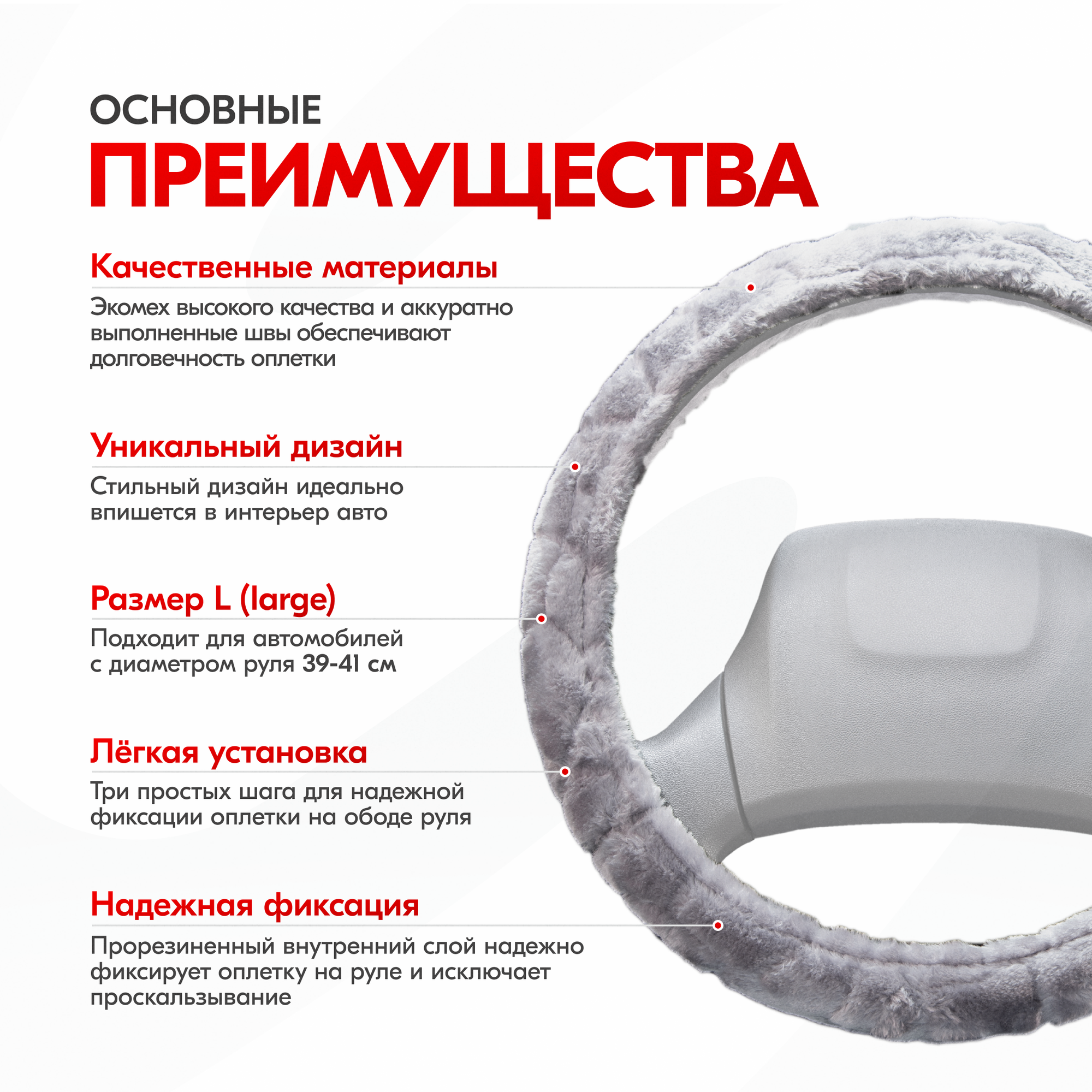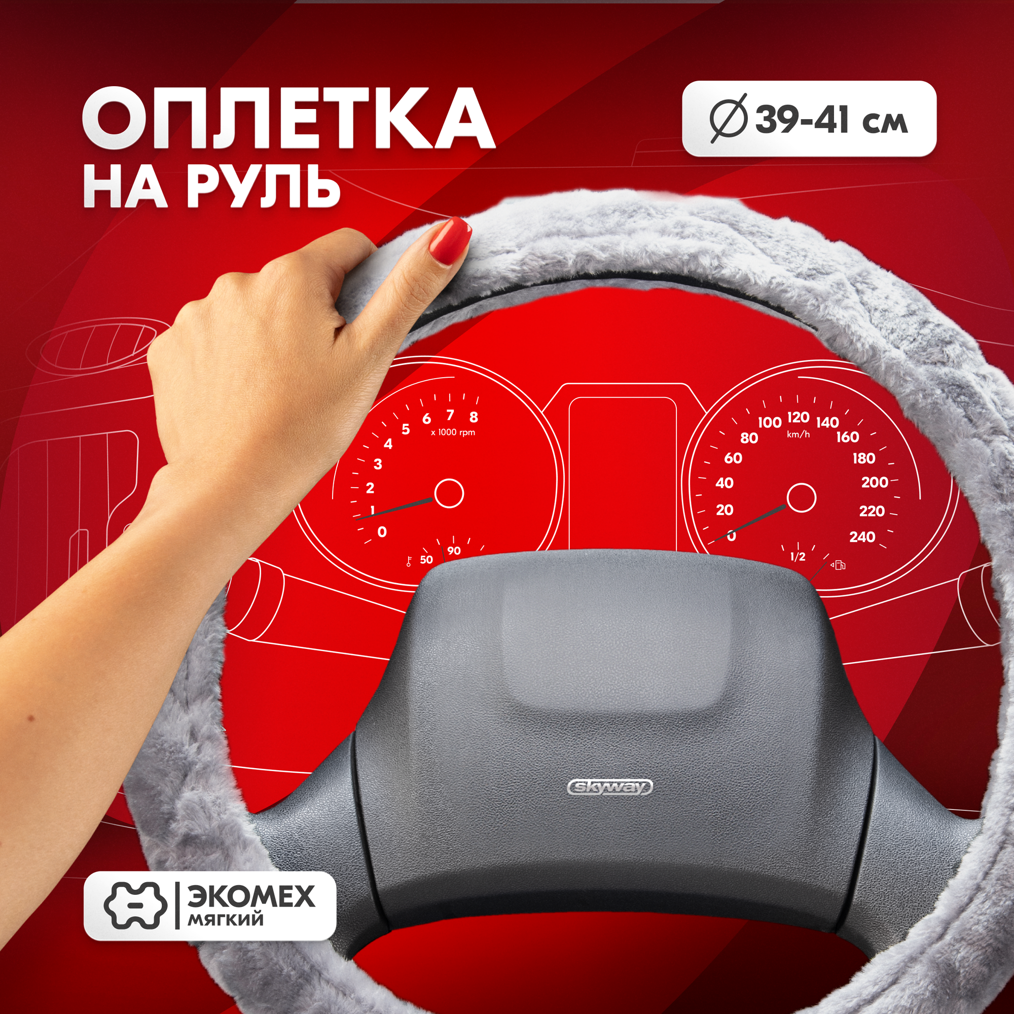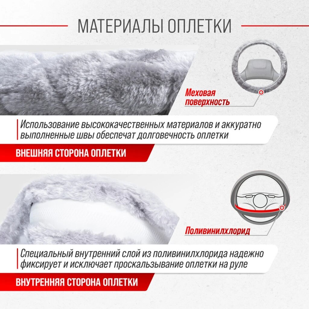 Оплётка руля SKYWAY меховая искуст серая ECO (L)