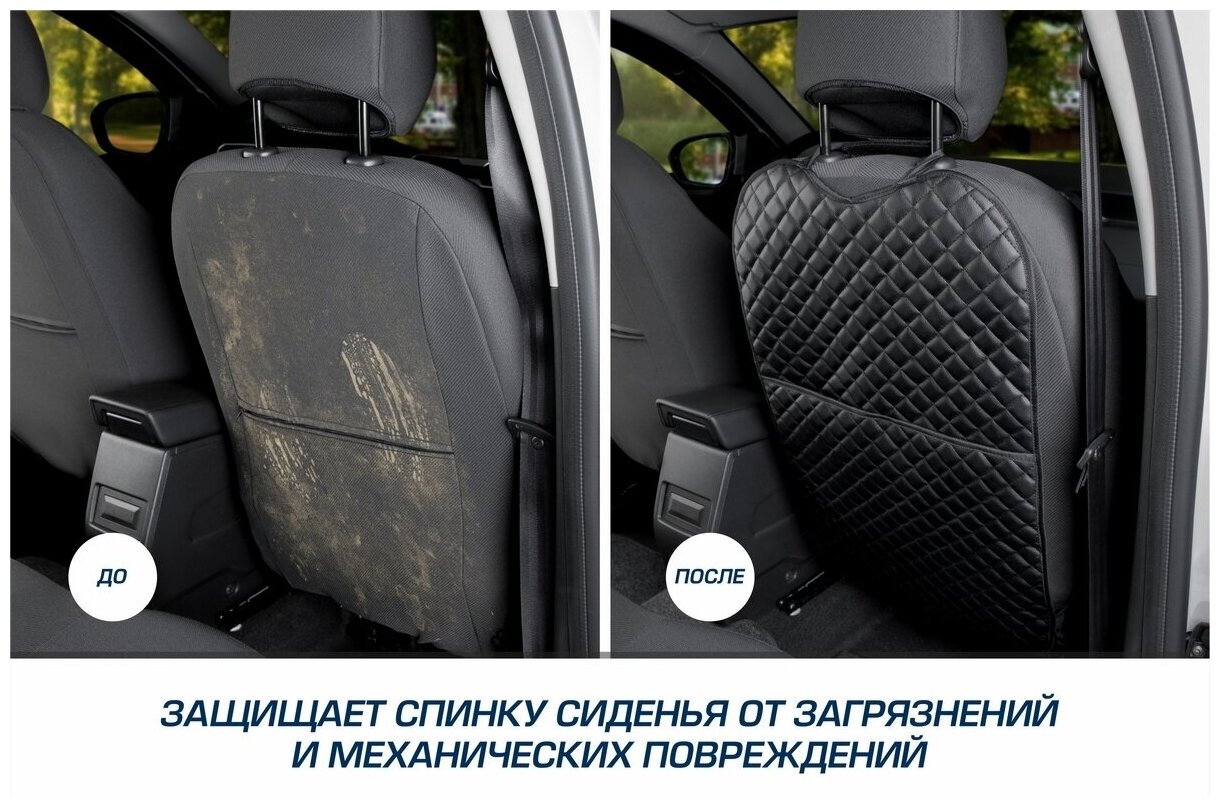 Защитная накидка на спинку сиденья автомобиля, AutoFlex, с карманом, 690х420 мм. Экокожа ромб. 91031