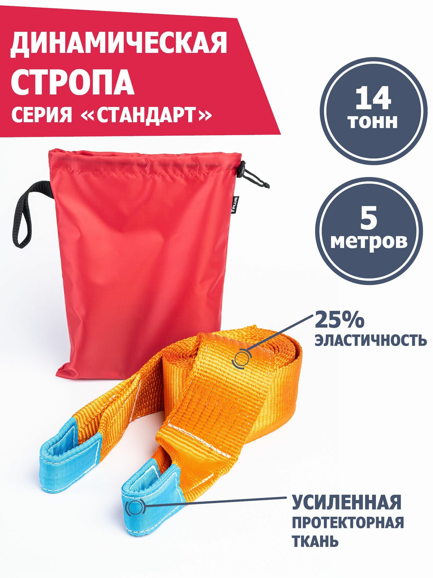 Динамическая стропа 40 т 5 м серия "Стандарт", рывковый трос для автомобиля, Tplus