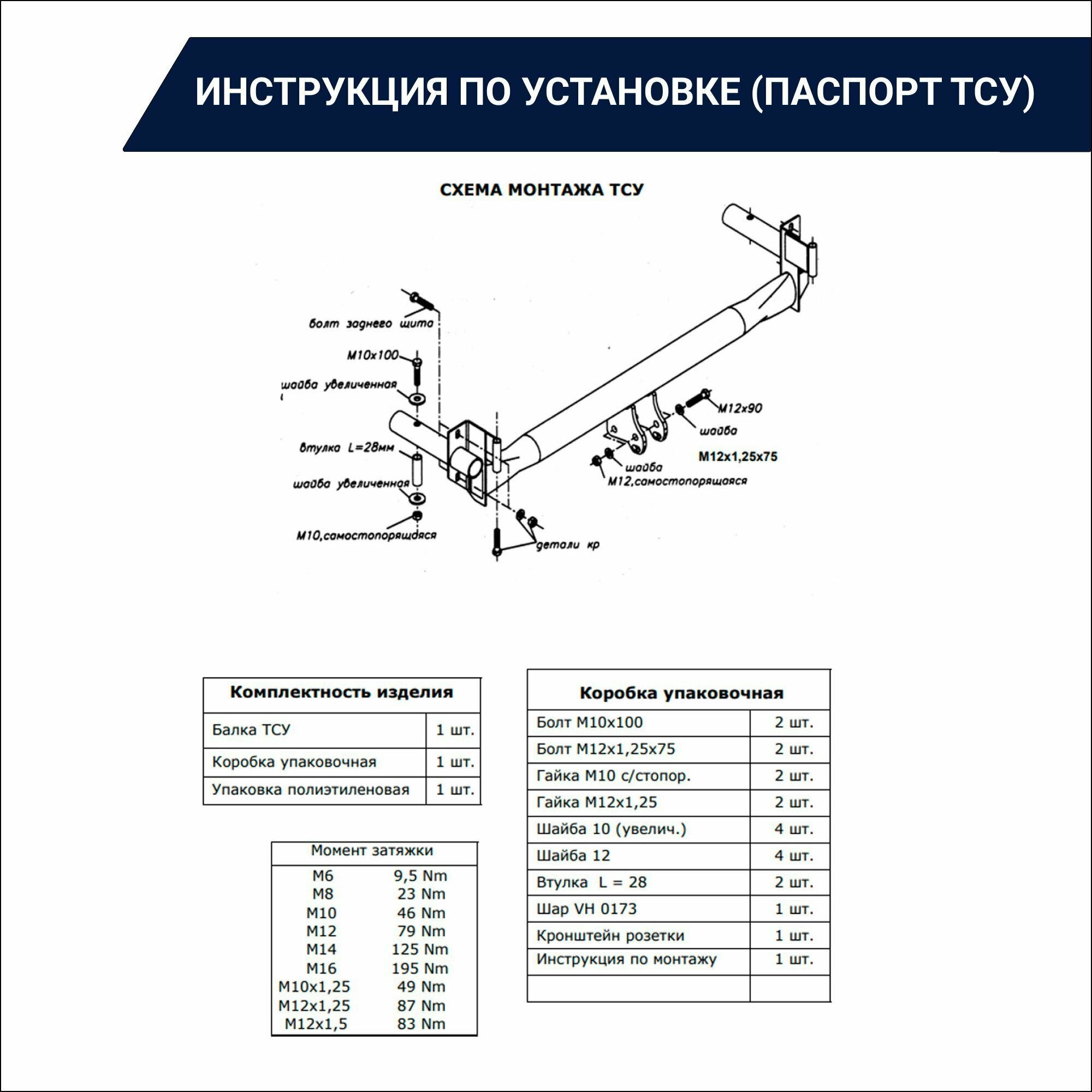 | Подробная комплектация | Тяга ТСУ - 1 шт. Защитный колпачек - 1 шт. Инструкция по монтажу - 1 шт. |