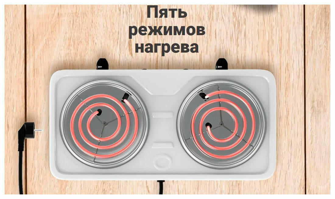 | Дополнительная информация | 5 режимов нагрева, индикация включения, две стальные конфорки |