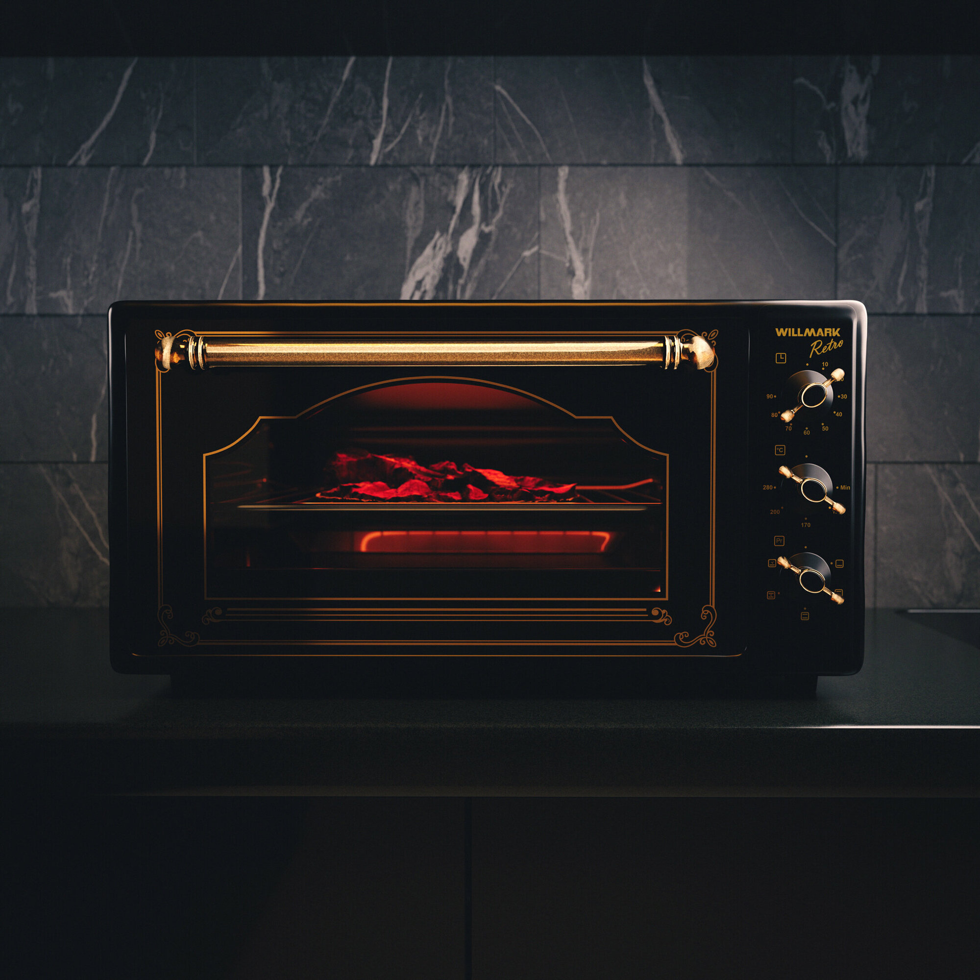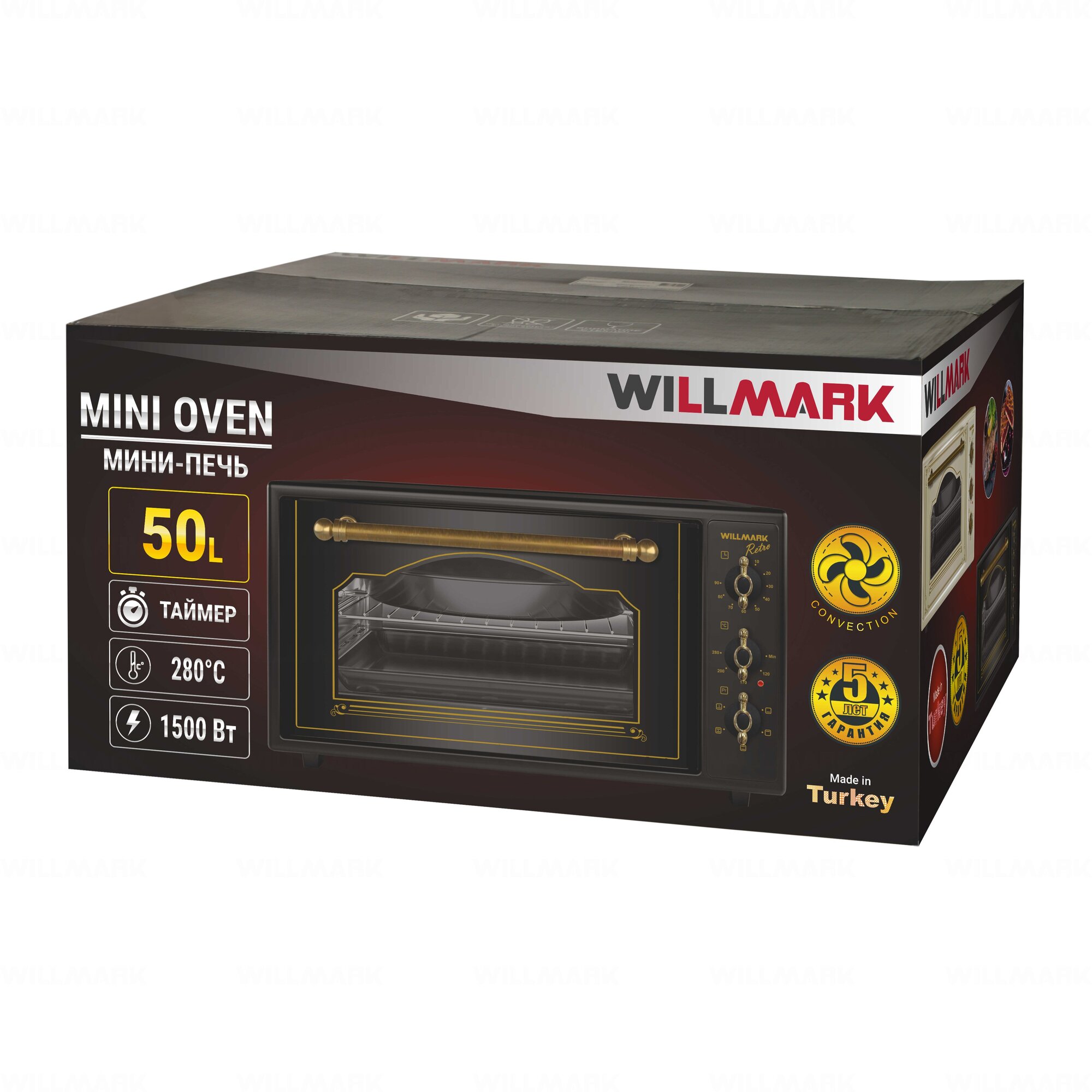 Мини-печь WILLMARK WOF-505BLR черный ретро (конвекция) интересное:
