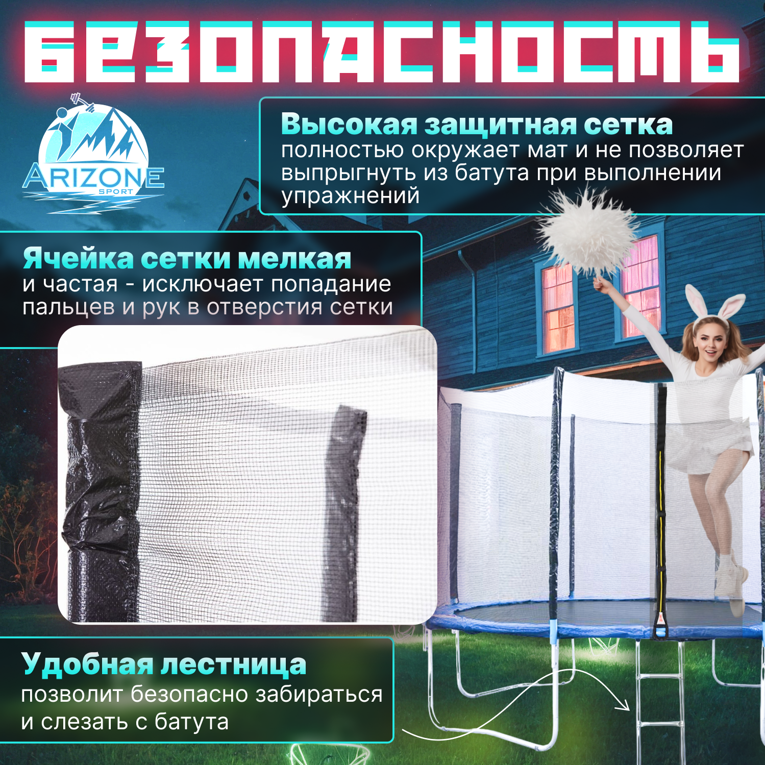 Батут ARIZONE D305 см с защитной сеткой и лестницей (80-100400)