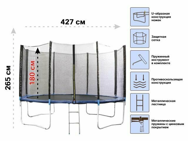 Батут с защитной сеткой и лестницей, 427х85 см, ARIZONE (для детей старше 14 лет) (80-140400)