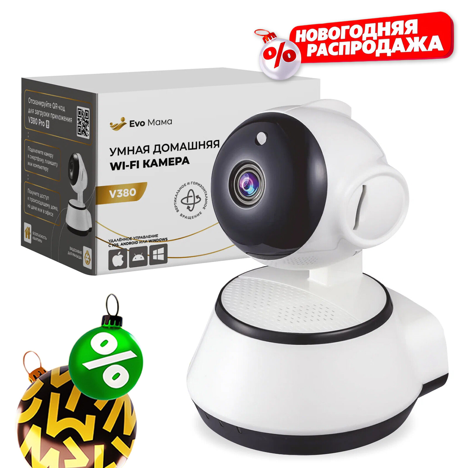 Купить Видеоняня Evo Mama поворотная 360 градусов, двусторонняя аудиосвязь, HD 720p, wifi, датчик движения. Умная домашняя камера. Подарок на Новый Год