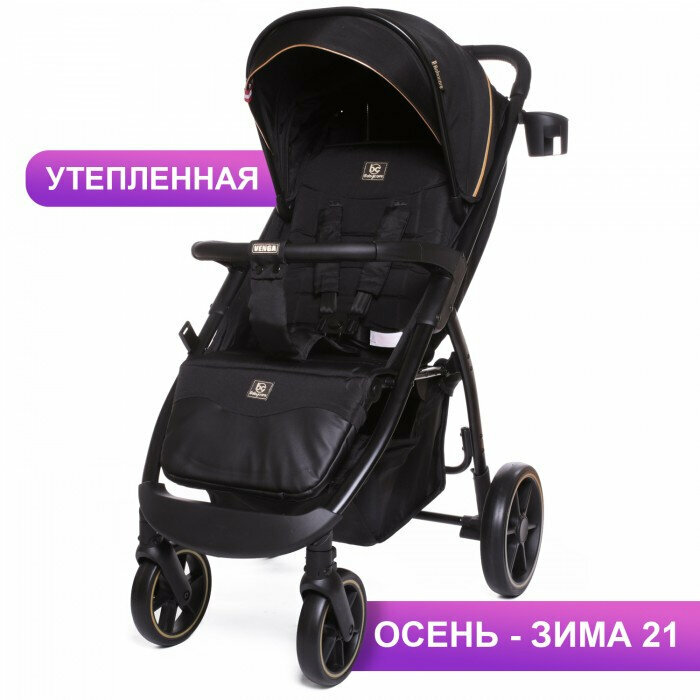 Коляска детская прогулочная Venga, всесезонная с накидкой для ног, большим капюшоном, полная комплектация, Babycare, черное золото
