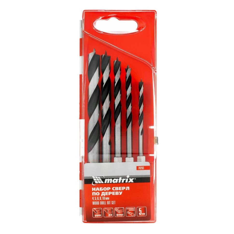 MATRIX Набор сверл по дереву, 4-5-6-8-10 мм, 5 шт, шестигранный хвостовик, пластиковый кейс, Matrix, ( 70283 ) интересное: