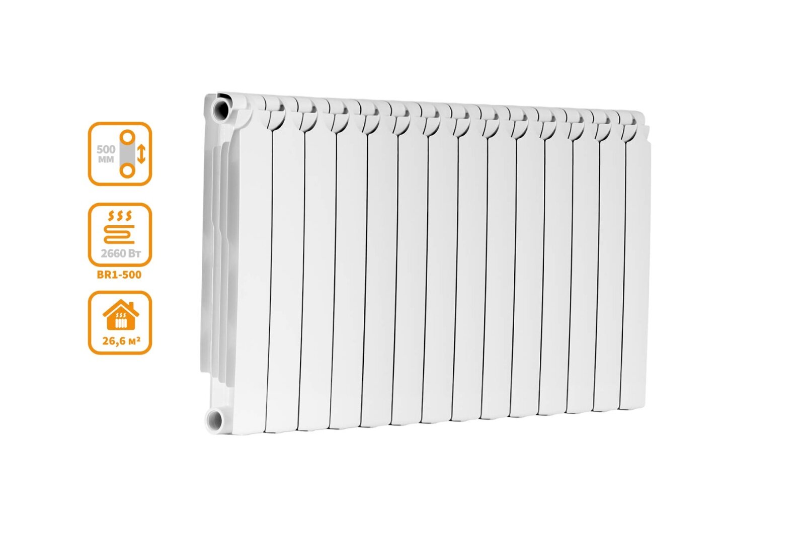 Радиатор биметалл Теплоприбор (россия) BR1-500х14секц, 26.6м2, теплоотдача - 2660Вт, боков.подключение
