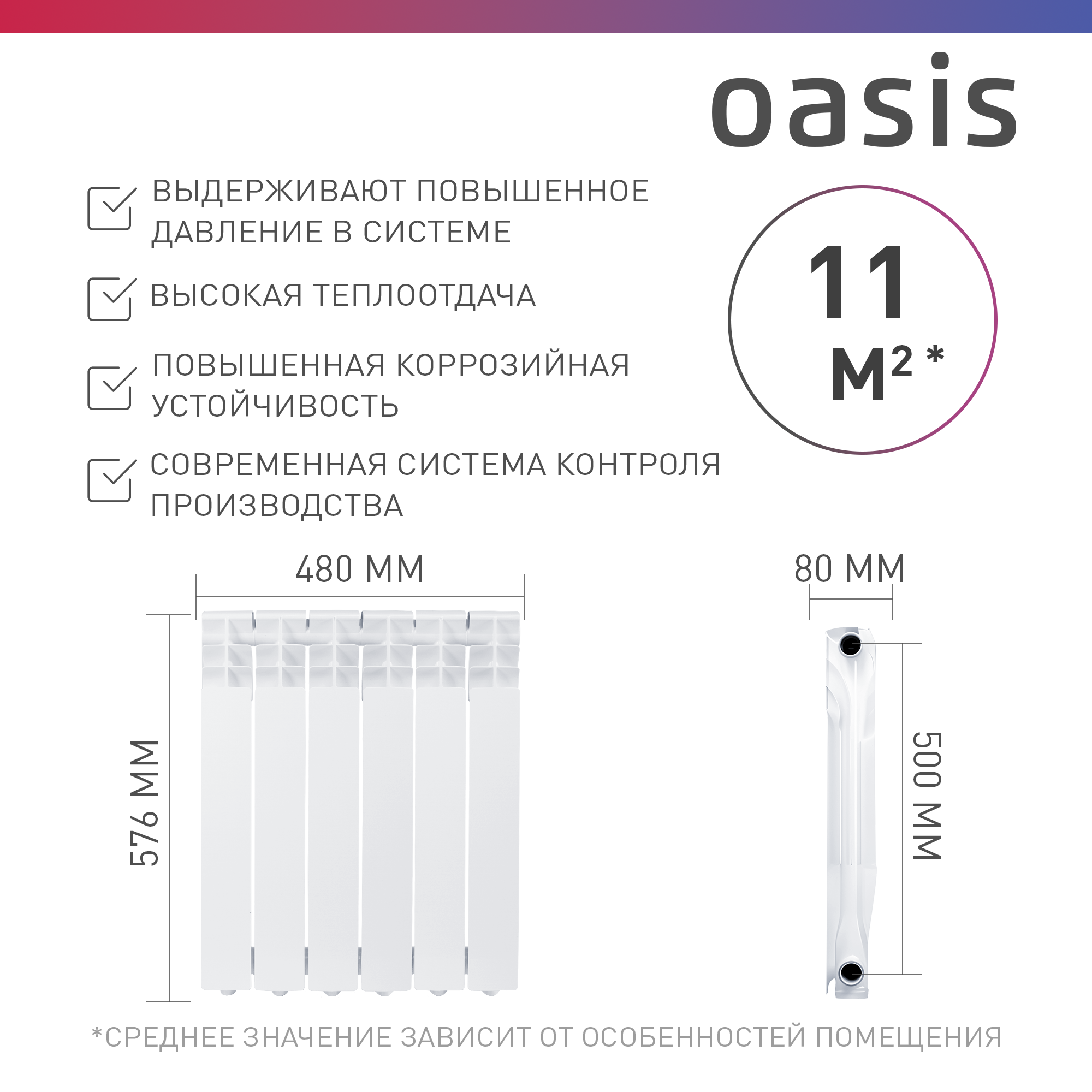 Oasis Алюминиевые радиаторы 500/80/4 4670004371299 .