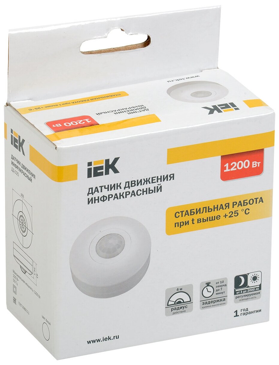 IEK Датчик движения ДД 025 белый, max 1200Вт, 360 гр.,6М,IP20 LDD11-025-1200-001
