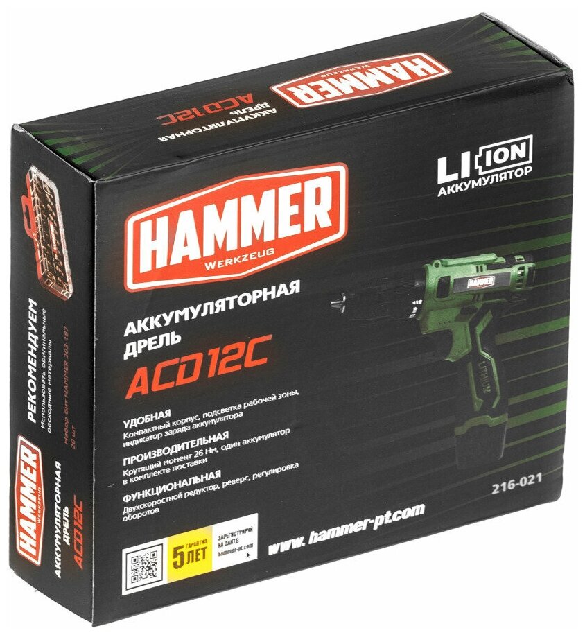 Дрель аккумуляторная Hammer ACD12CS