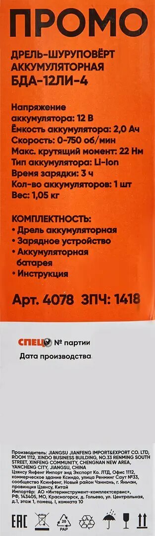 Дрель-шуруповерт аккумуляторная, Спец БДА-12ЛИ-4, 12 В Li-ion 1x2 Ач интересное: