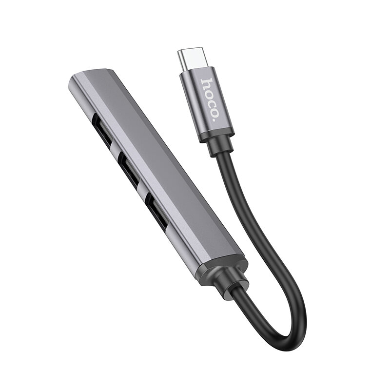 Type-C HUB Hoco HB26, 4 порта (3xUSB 2.0, 1xUSB 3.0), серый