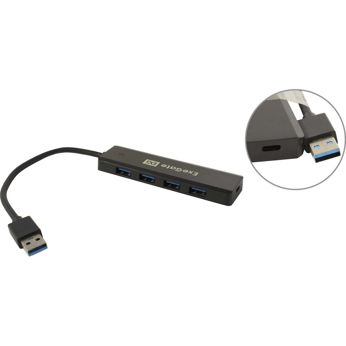 Купить Разветвитель Exegate USB DUB-4P/1 USB 3.0 Type A (M) - 4 x Type A (F) (Type C (F) питание) 0.16 м черный (EX293980RUS)