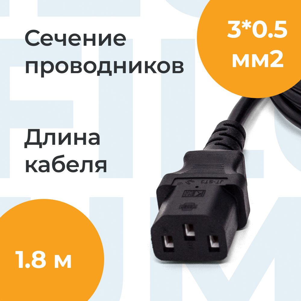 Кабель питания Filum CEE 7/7- С13, 3х0.5мм, 220В, 6A, чёрный, 1.8м (FL-PC6-EU-C13-1.8M)