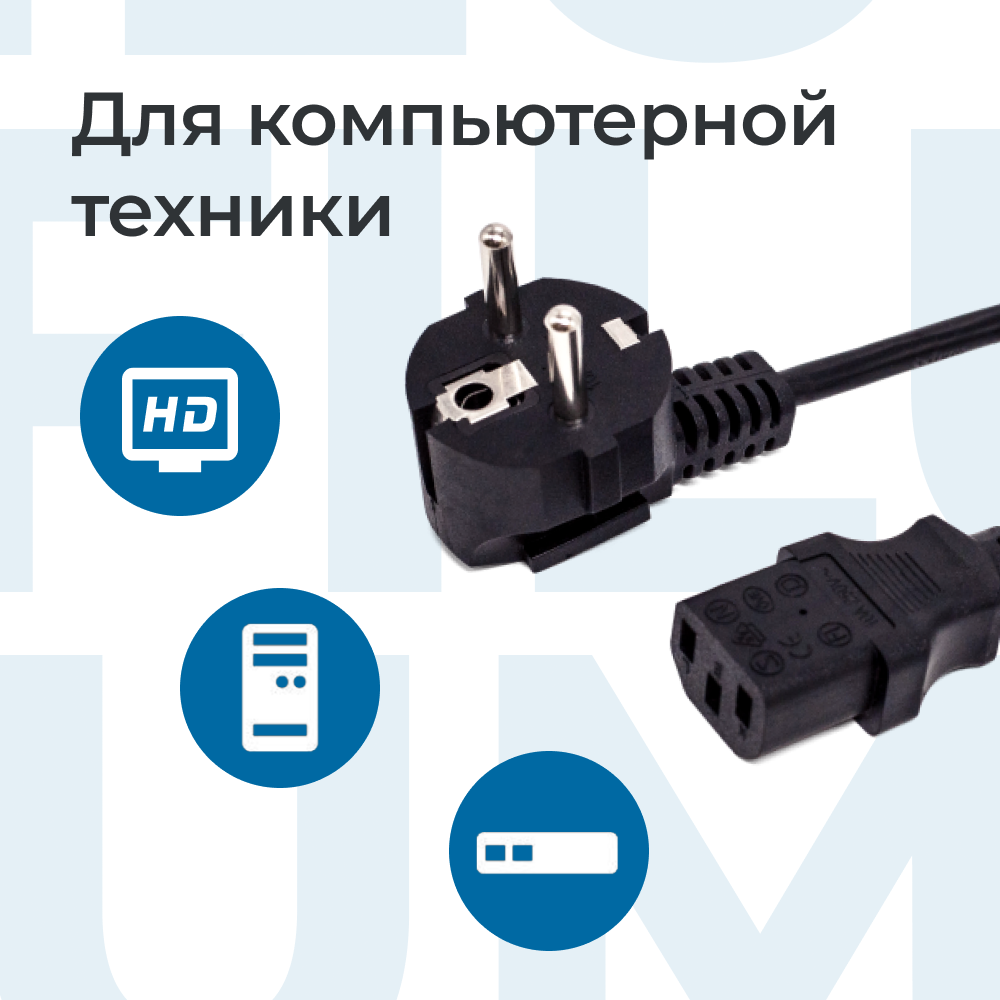 Fillum кабель Filum Кабель питания CEE 7 7- С13, 3х0.5мм, 220В, 6A, чёрный, 5м FL-PC6-EU-C13-5M 873335