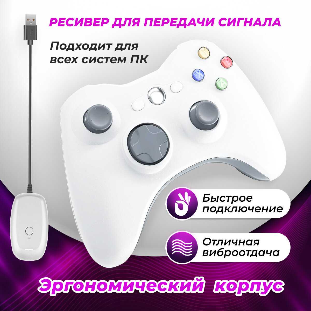 Купить Геймпад / джойстик для консоли Xbox 360 телефона с ресивером белый