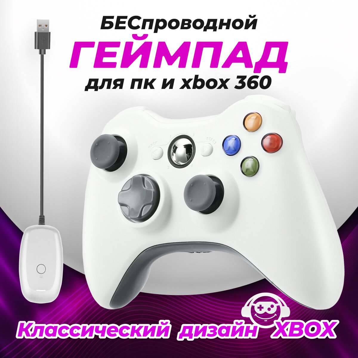 Геймпад / джойстик для консоли Xbox 360 телефона с ресивером белый интересное:
