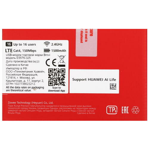Модем 3G/4G Huawei Brovi E5576-325 USB Wi-Fi Firewall +Router внешний белый интересное: