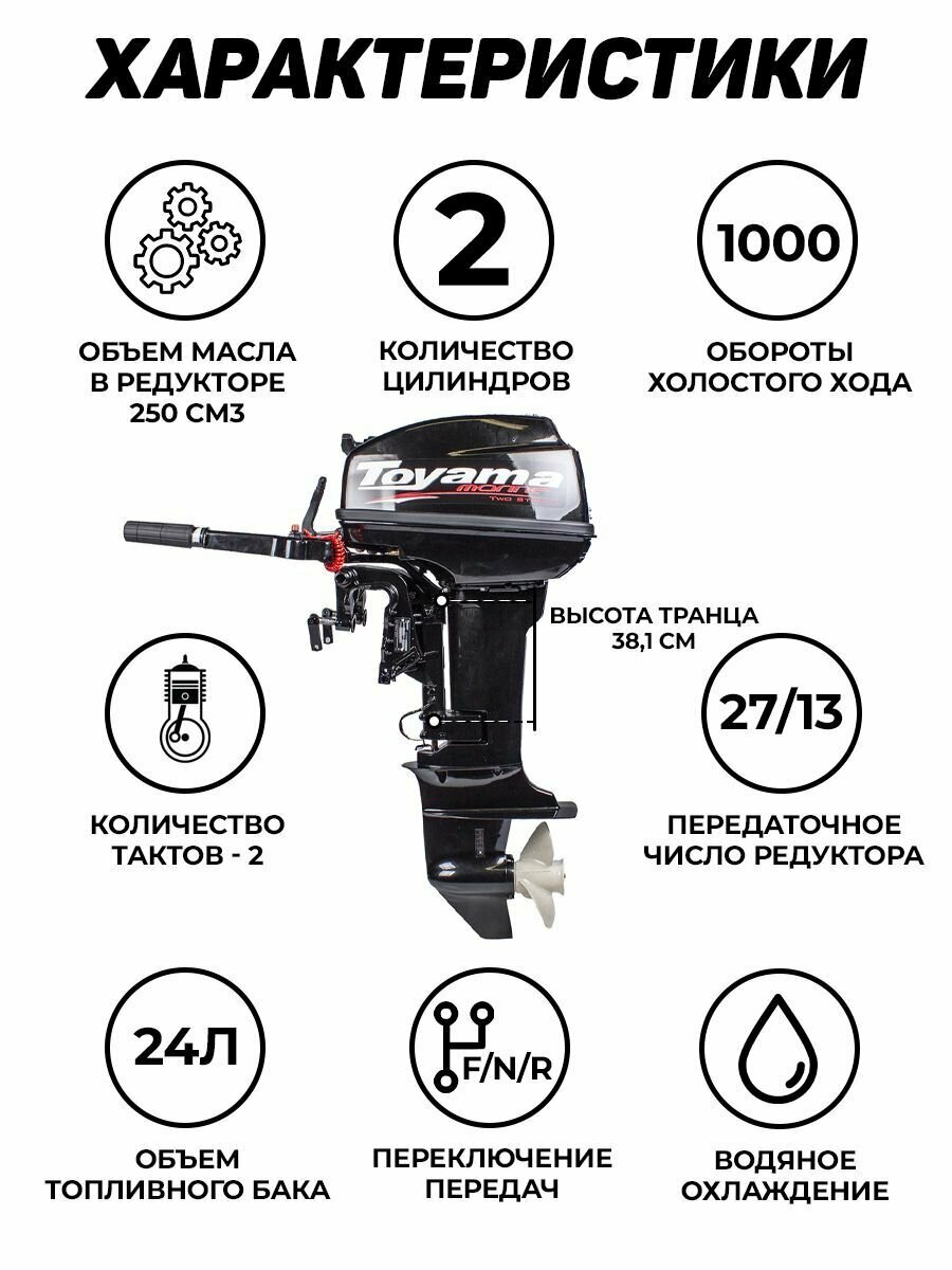 Лодочный мотор TOYAMA T9.9BMS, бензиновый, 15 л.с., 246 куб.см, 2 тактный, 7,3 кВт интересное: