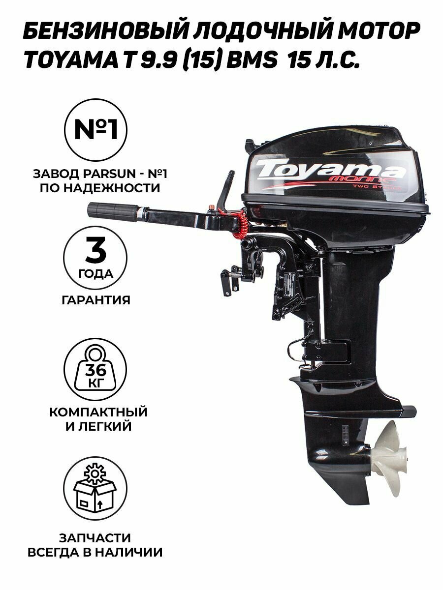 Лодочный мотор Toyama T 9.9 (15)BMS(завод PARSUN), бензиновый, 2-х тактный, 15 л.с.
