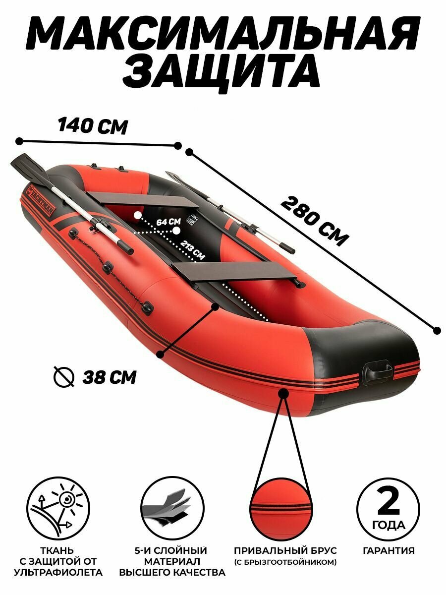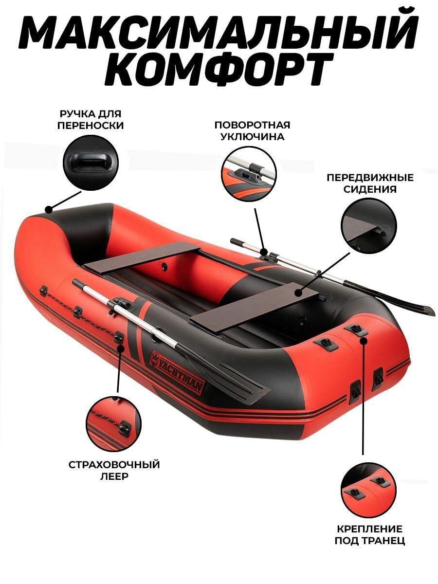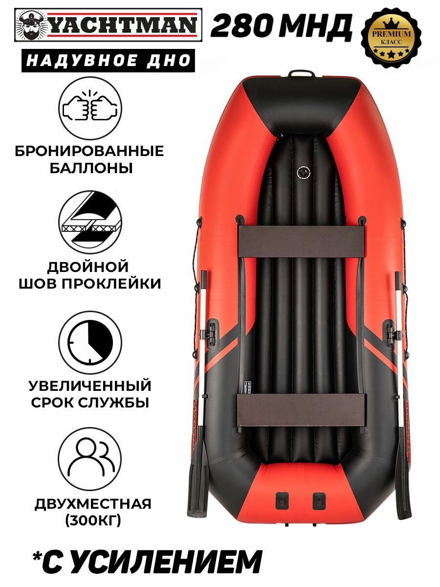 Лодка ПВХ моторно-гребная YACHTMAN 280 МНД, надувное дно, красный;черный интересное: