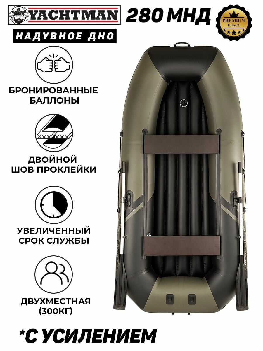 Лодка ПВХ моторно-гребная YACHTMAN 280 МНД, надувное дно, хаки;черный интересное: