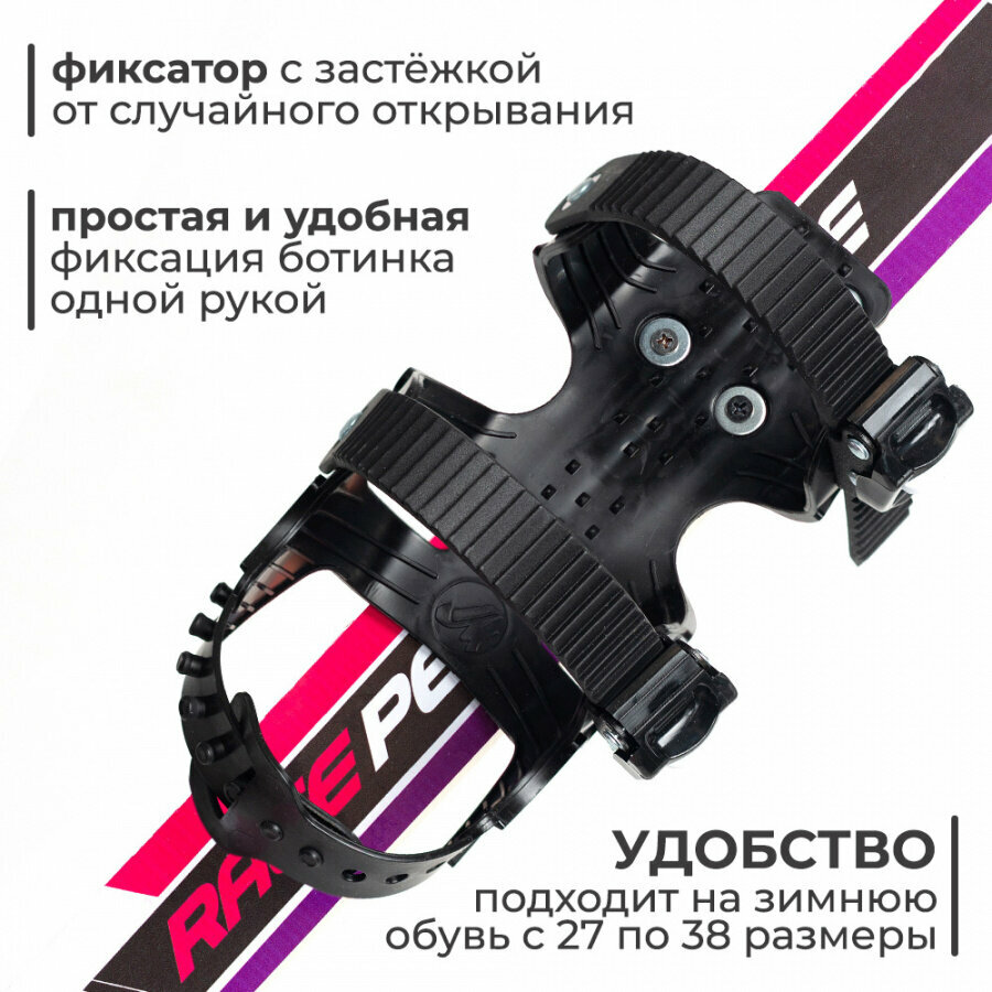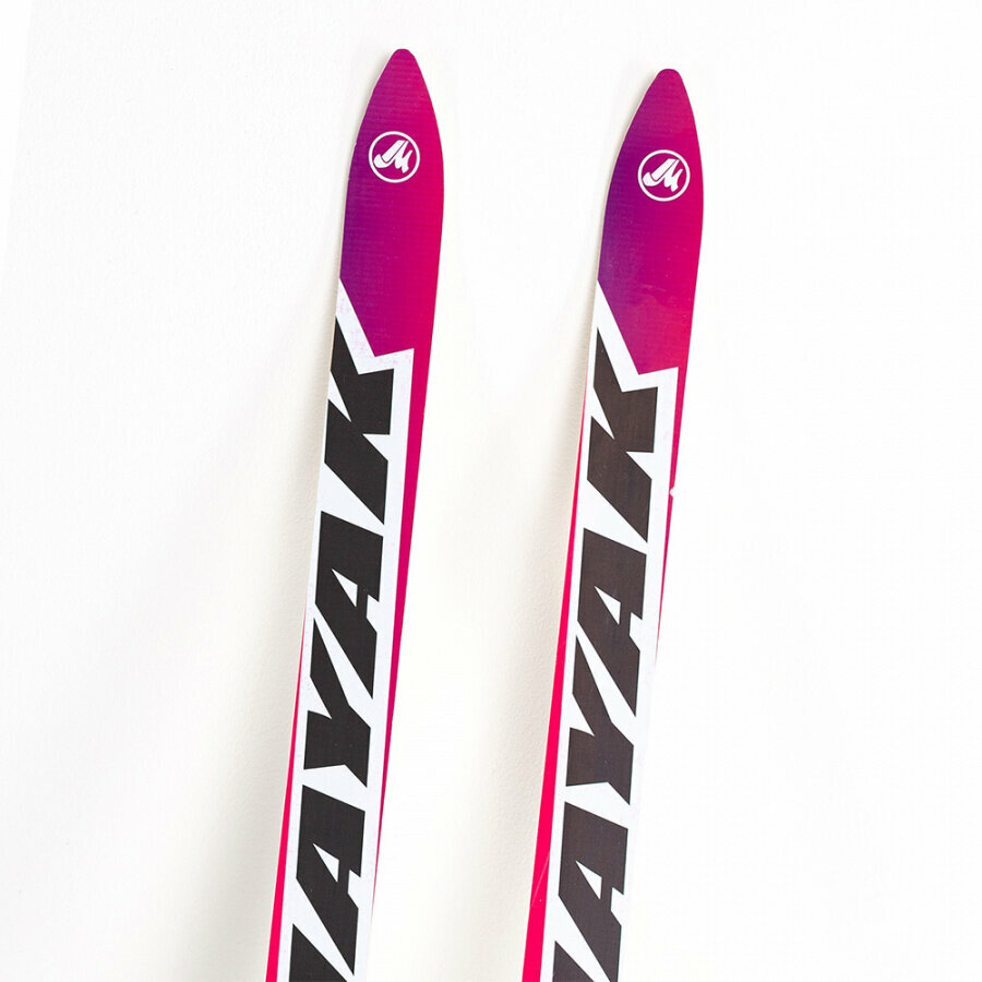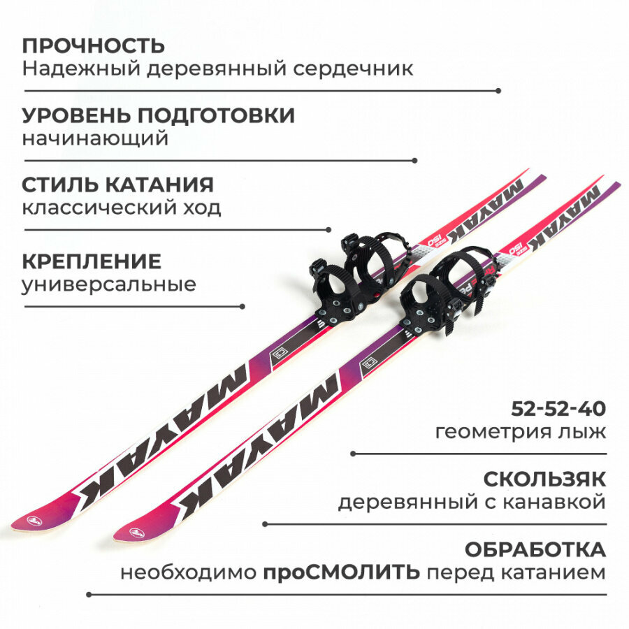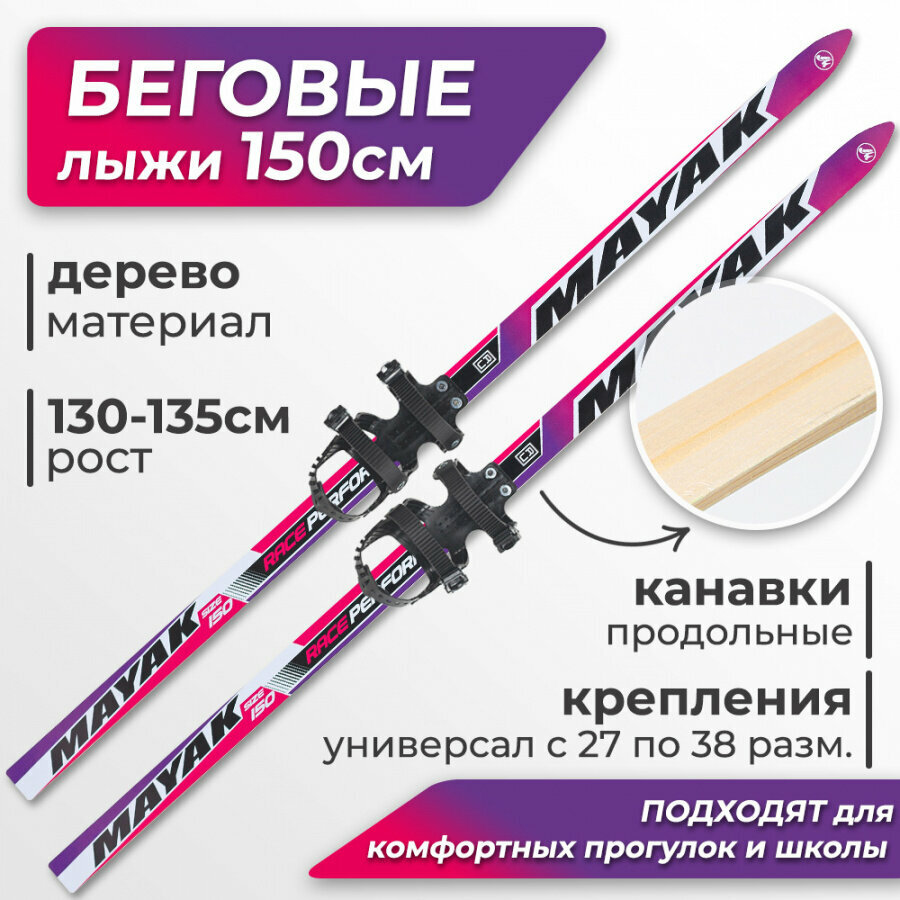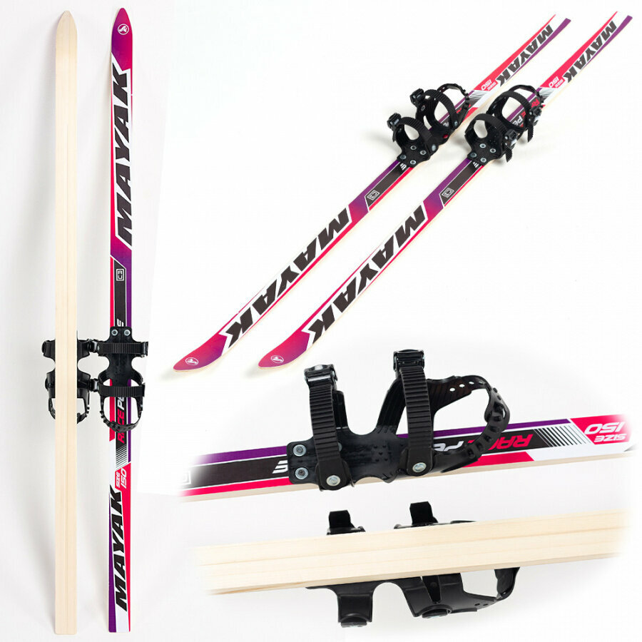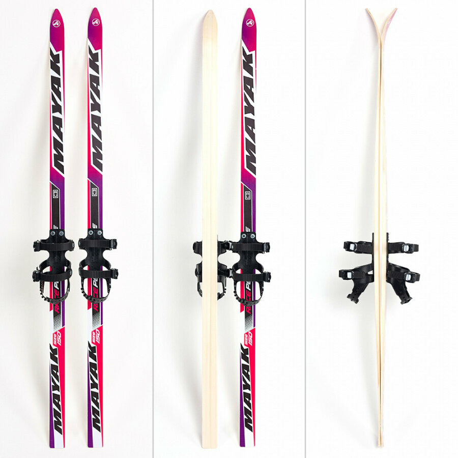 Купить Лыжи беговые подростковые Маяк 150 см деревянные с универсальными креплениями фиолетовые