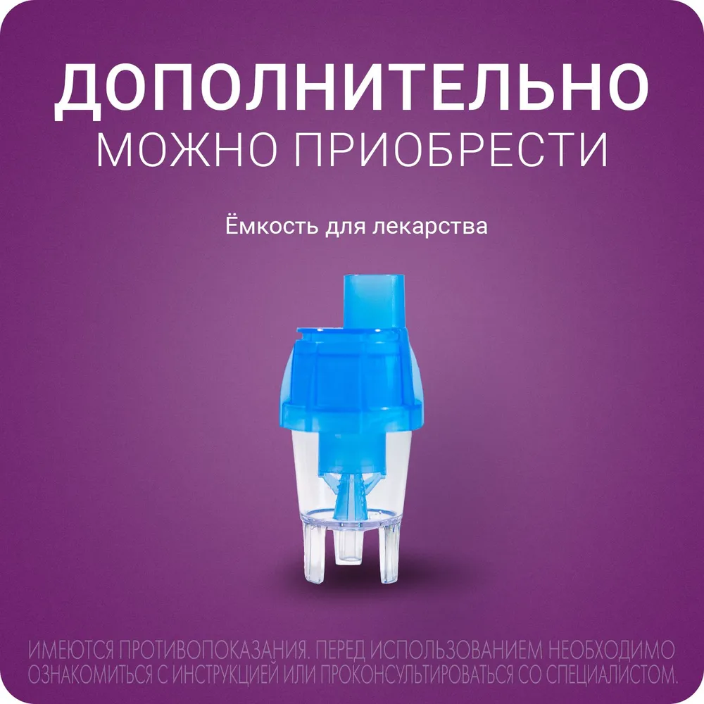 | Подробная комплектация | Ингалятор, взрослая и детская маски, насадки для носа и рта, кейс, набор декоративных наклеек |