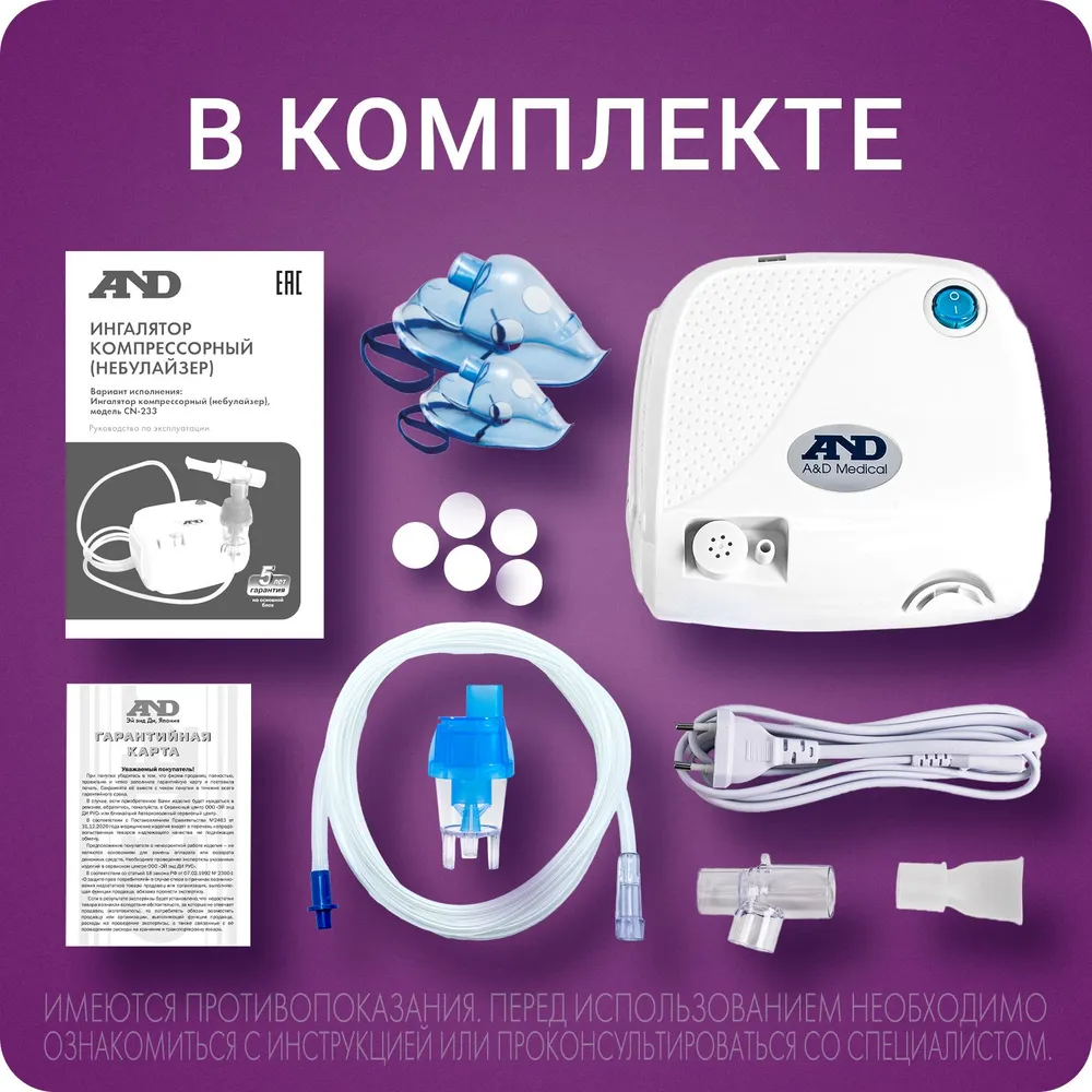 AND CN-233 Детский Ингалятор (небулайзер) компрессорный