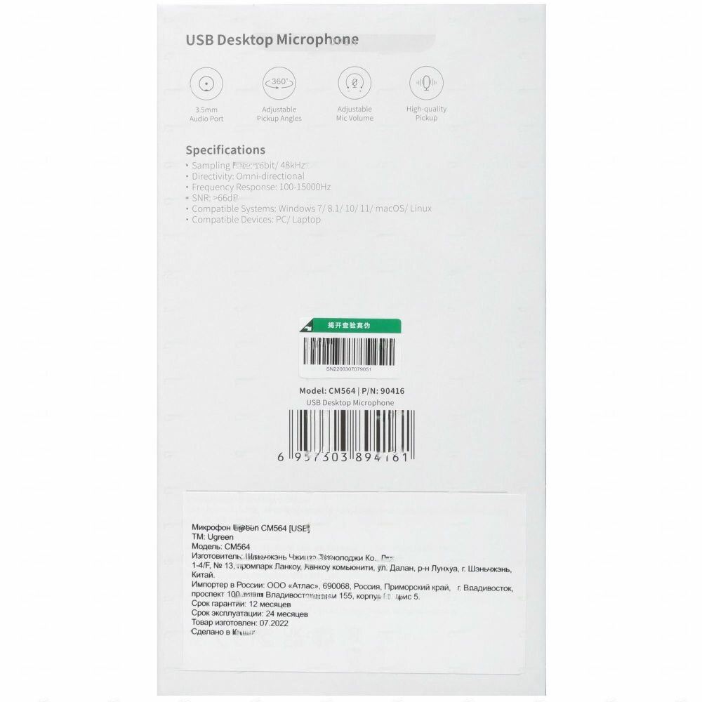 Ниже Вы можете прочитать отзывы на Микрофон Ugreen CM564 черный, ознакомится с подробными характеристиками, посмотреть интересные обзоры и фотографии на Микрофон Ugreen CM564 черный.